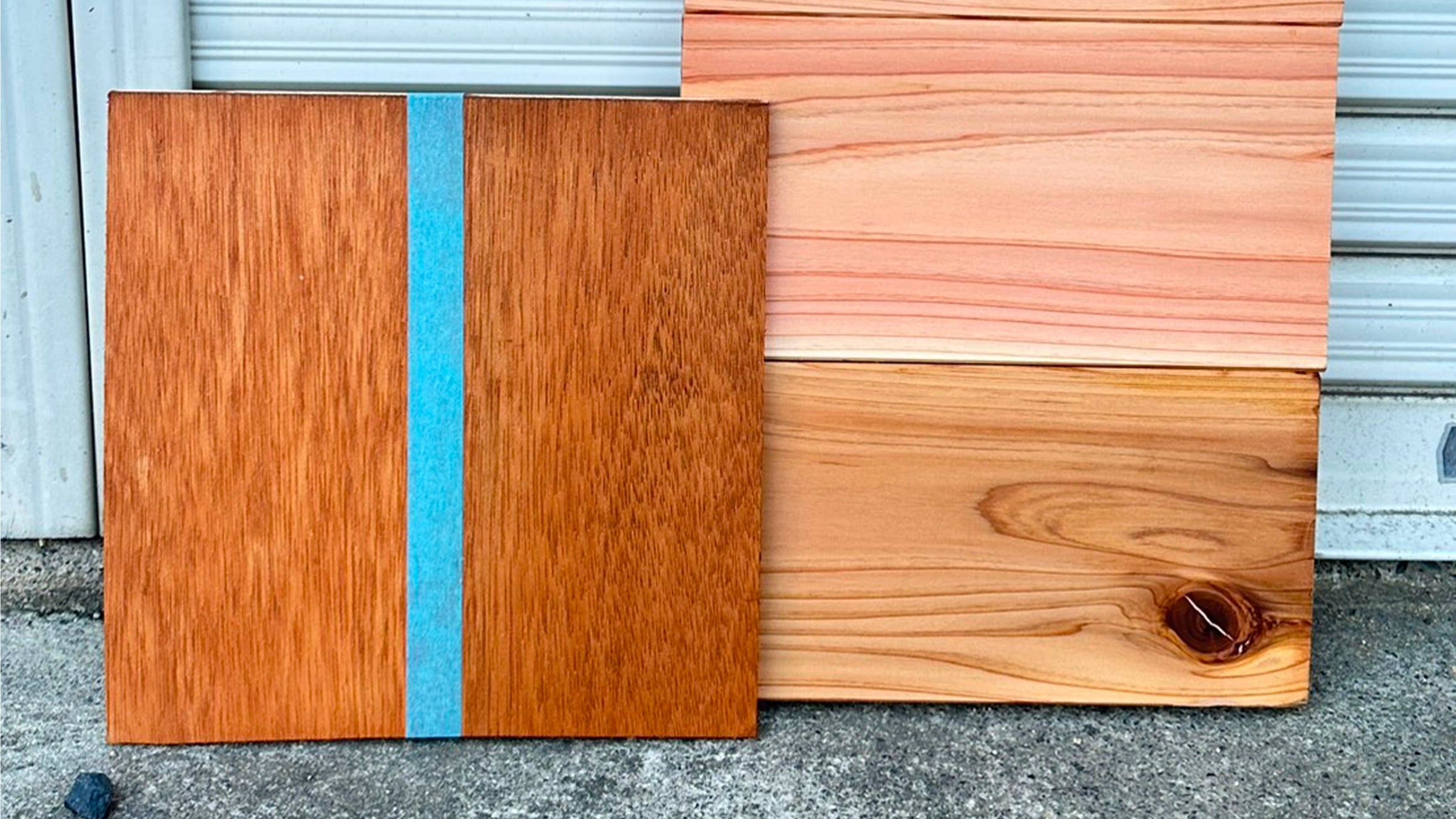 希望する色味まで何度も試塗りをしていただき、チークのステイン(色付け)とダークウォールナットのオイル(保護材)の二度塗りで納得のいく色味に到達できることが分かりました。