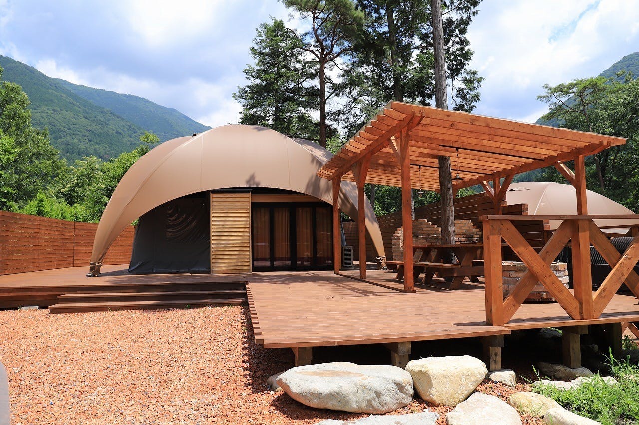 岐阜県中津川市付知峡にある総合キャンプ場 FORESTDOME 付知峡では、区画サイト・ログハウス・グランピング・フィンランド式サウナ・ドッグランなど充実した設備で皆様をお待ちしております。敷地内の付知川で川遊びもでき、お一人から家族、グループのような大人数まで様々な方が楽しめるキャンプ場となっております。