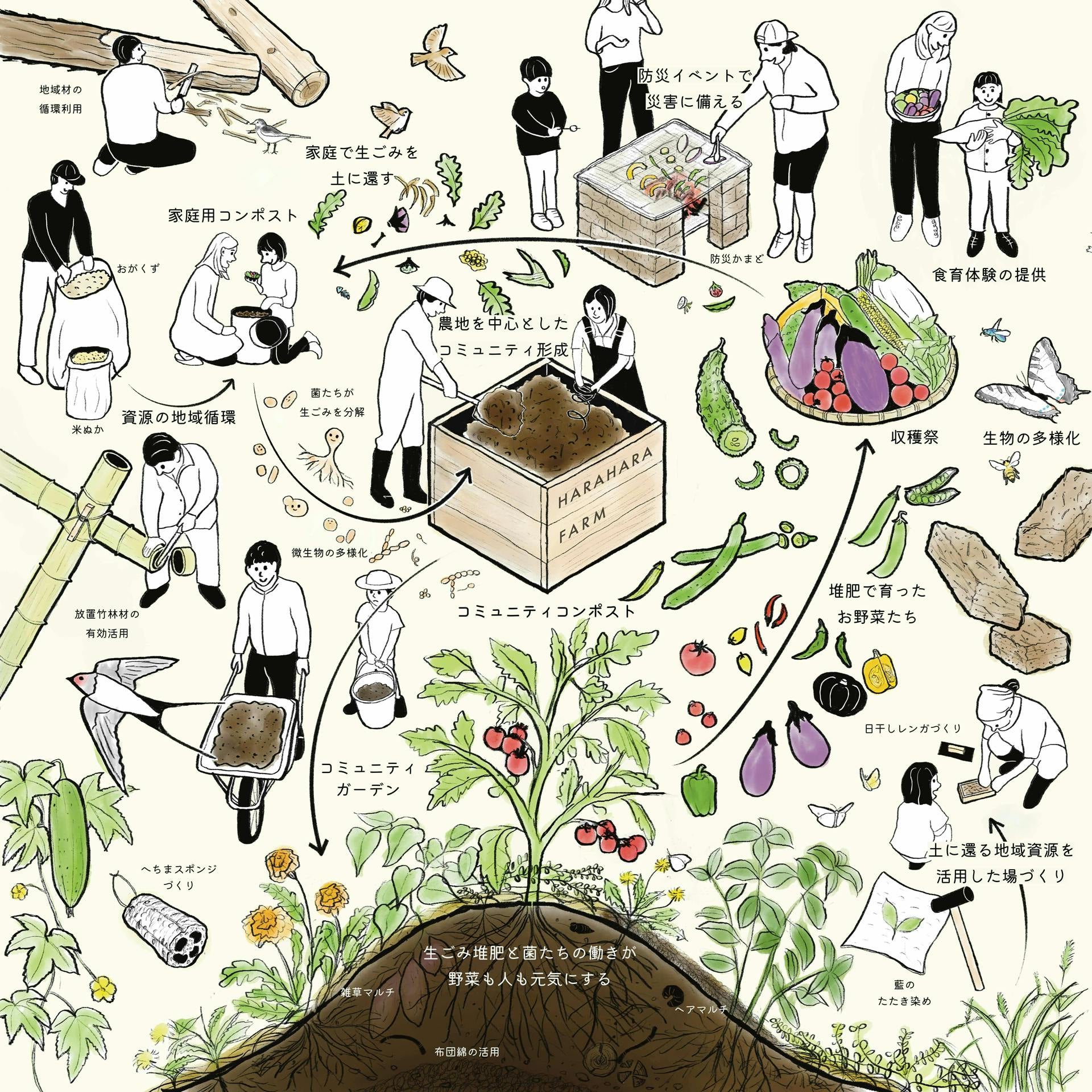 目に見えるものだけでなく、土の中の微生物や、人と人のあいだに流れる目に見えないものも丁寧に循環させたい。
