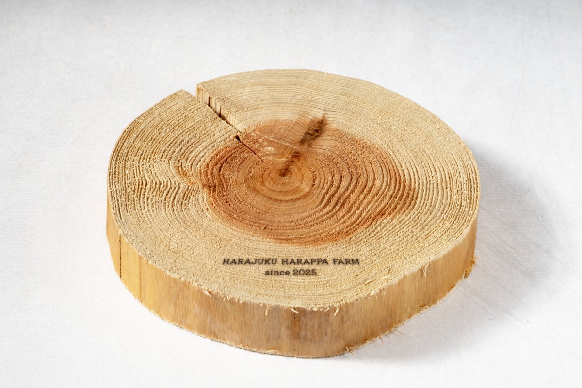 原宿はらっぱファームでベンチとして使われていた丸太をカットし、刻印を施した記念プレートをお届けします。7年以上空き地だった土地で、人を支え、対話を見守ってきた木材。原宿1500㎡の物語の一部を、かたちとして残せる特別なリターンです。直径約25cm、厚さ約3cm(多少の誤差があります)