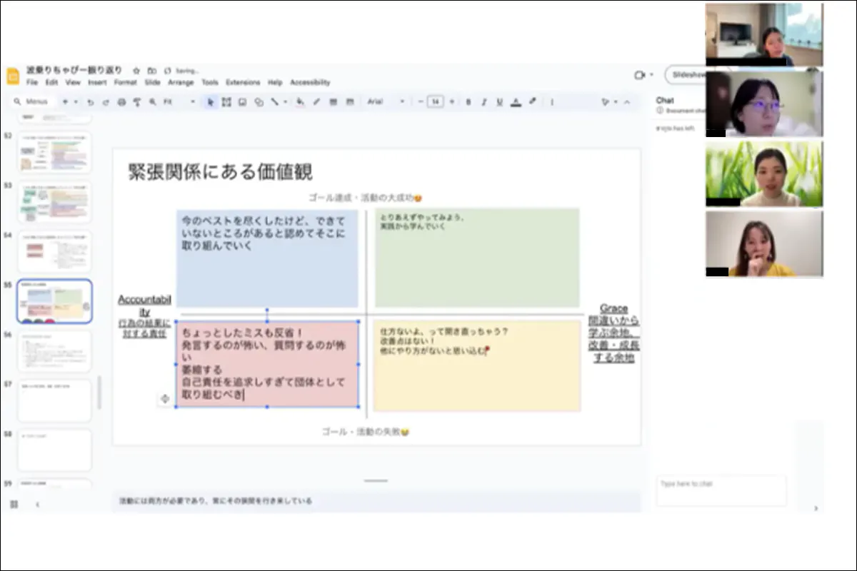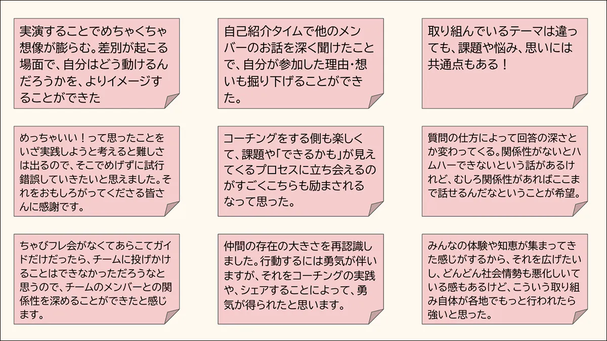 あらこて会が終わるたびに、みんなでどんな学びがあったのか、振り返りをしています。