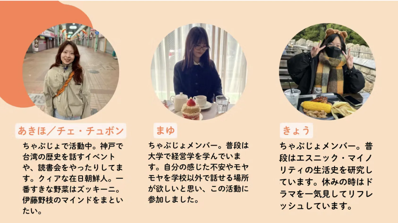 2026/03/27 14:43みなさま私たちのクラウドファンディングにご寄付、ご支援いただき、本当にありがとうございます。おかげさまでプロジェクト開始から10日で20%を達成することができました!今までご支援いただいた皆様には感謝の気持ちでいっぱいです!そこでみなさまに再度お願いがあります。クラファンページの♡を押していただき、お気に入り登録を忘れずにお願いいたします!そして、周りの方々へのシェアも引き続きよろしくお願いします。[ちゃびフレメンバー紹介&このプロジェクトへの想い]今回もちゃびフレ会に参加してくださっているお三方を紹介します。〈ゆき〉自分の心身を犠牲にして周りにケアを押し付けながらガツガツ社会運動をやって燃え尽きた経験があり、今は自分自身や手が届く範囲の人をしっかりと大切にしながら社会運動をしていきたいと思っています。それをちゃぶ女の皆さんはやってこられたんだなあと、これまでの歩みに感激し共感しています。〈たかはし〉主に大学の性差別・性暴力という観点から、差別や抑圧のない誰もが安心していられる社会を実現したいと思って活動してきました。ちゃびフレ会を通して、同じ思いを持ちつつ多様な立場・視点から社会をよくするために活動している方々と出会えたことは宝物です。〈あだにー〉活動や仕事、日々の生活のコミュニティ内で、私や他のメンバーが誰かを傷つける言動をしてしまうことは、コミュニティが多様であればあるほどよく起こります。それに対していつもNOを言える自分でありたいと思いながらも、コミュニティとの関わりの歴史や他のメンバーとの関係性に日和ってしまって何も言えず、傷ついた人のケアができなかったこと、何もできなかったことへの傷つきなどをどうすることもできないということがあります。そういう場のコミュニケーションツールとして、ちゃぶじょのみなさんが発明してくれた「ハムハー」そしてあらこてガイドは希望でしかなく、それをどう生かすか、どうブラッシュアップしていくかを考えるちゃびフレ会にはいつも勇気づけられています。自分のコミュニティでの傷つきが発生しないためのメンバーへの声掛けには勇気がいるのですが、ちゃびフレ会でコーチングしてもらったり、背中を押してもらえることでチャレンジすることができます。また、他の方のチャレンジからもエンパワーメントされます。大事なプラットフォームとの出会いに感謝しています。このようにちゃびフレ会には、熱い想いを持って参加してくださっている方ばかりで、とても刺激を受けています!ーーーー〈やさしいにほんご〉みなさま、こんにちは。 わたしたちのクラウドファンディングを おうえん していただき、ありがとうございます。プロジェクトが 始(はじ)まってから 10日間(とおかかん)で、 20% 集(あつ)まりました! 支援(しえん)してくれた みなさまには、感謝(かんしゃ)の 気持(きも)ちで いっぱいです。みなさまへ もう一度(いちど) お願(ねが)いクラウドファンディングの ページにある 「♡(ハートマーク)」を 押(お)して、「お気に入り登録(とうきにりとうろく)」を わすれずに おねがいします! そして、周(まわ)りの人(ひと)たちにも このプロジェクトを 広(ひろ)めてください。よろしく お願(ねが)いします。[ちゃびフレメンバーの紹介(しょうかい)]今回(こんかい)も「ちゃびフレメンバー」の 3人(さんにん)を 紹介(しょうかい)します。〈ゆき〉自分(じぶん)の心身(しんしん)を犠牲(ぎせい)にして周(まわ)りにケアを置(お)き去(ざ)りにしながらガツガツ社会運動(しゃかいうんどう)をやって燃(も)え尽(つ)きた経験(けいけん)があり、今(いま)は自分自身(じぶんじしん)や手(て)が届(とど)く範囲(はんい)の人(ひと)をしっかりと大切(たいせつ)にしながら社会運動(しゃかいうんどう)をしていきたいと思(おも)っています。それをちゃぶ女(じょ)の皆(みな)さんはやってこられたんだなあと、これまでの歩(あゆ)みに感激(かんげき)し共感(きょうかん)しています。〈たかはし〉主(おも)に大学(だいがく)の性差別(せいさべつ)・性暴力(せいぼうりょく)という観点(かんてん)から、差別(さべつ)や抑圧(よくあつ)のない誰(だれ)もが安心(あんしん)していられる社会(しゃかい)を実現(じつげん)したいと思(おも)って活動(かつどう)してきました。ちゃびフレ会(かい)を通(とお)して、同(おな)じ思(おも)を持(も)ちつつ多様(たよう)な立場(たちば)・視点(してん)から社会(しゃかい)をよくするために活動(かつどう)している方(かた)々と出会(であ)えたことは宝物(たからもの)です。〈あだにー〉活動(かつどう)や仕事(しごと)、日々(ひび)の生活(せいかつ)のコミュニティ内(ない)で、私(わたし)や他(ほか)のメンバーが誰(だれ)かを傷(きず)つける言動(げんどう)をしてしまうことは、コミュニティが多様(たよう)であればあるほどよく起(お)こります。それに対(たい)していつもNOを言(い)える自分(じぶん)でありたいと思(おも)い