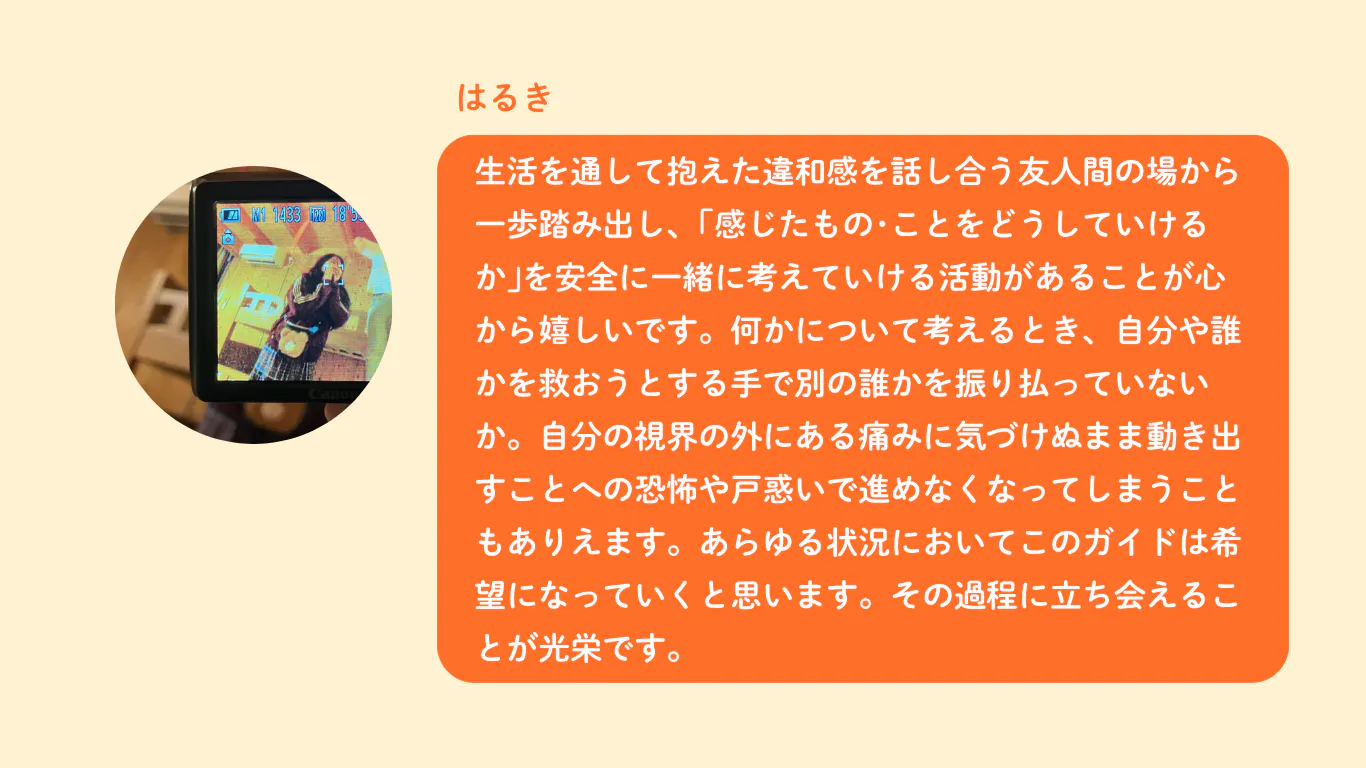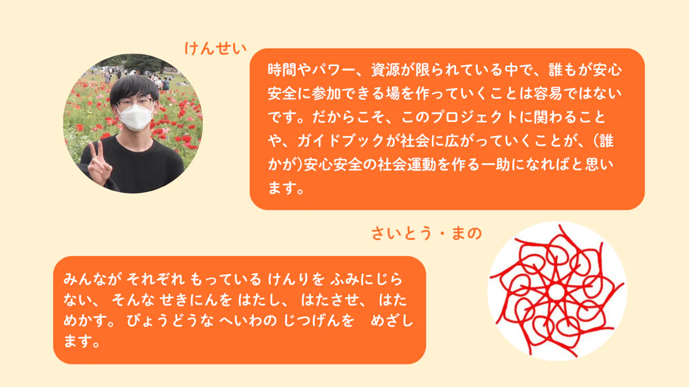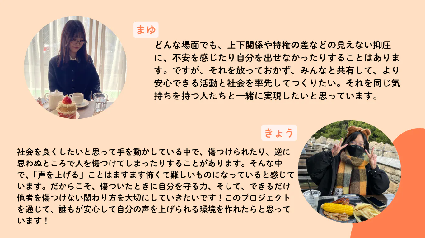 「声をあげる中で傷ついた経験もあるから、安心して声をあげられるようにしたい」