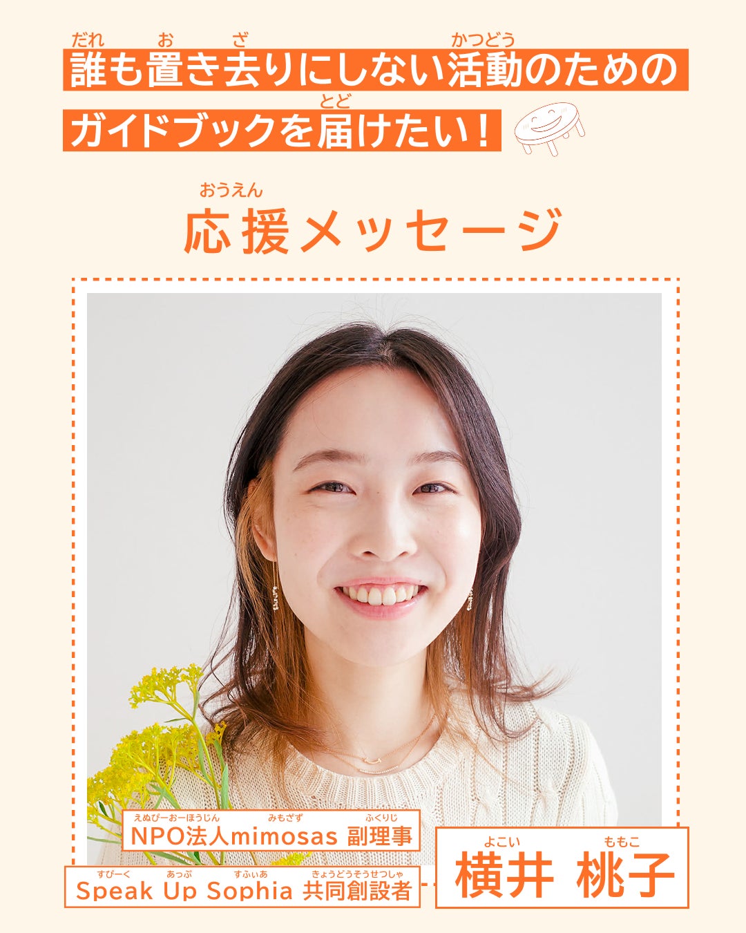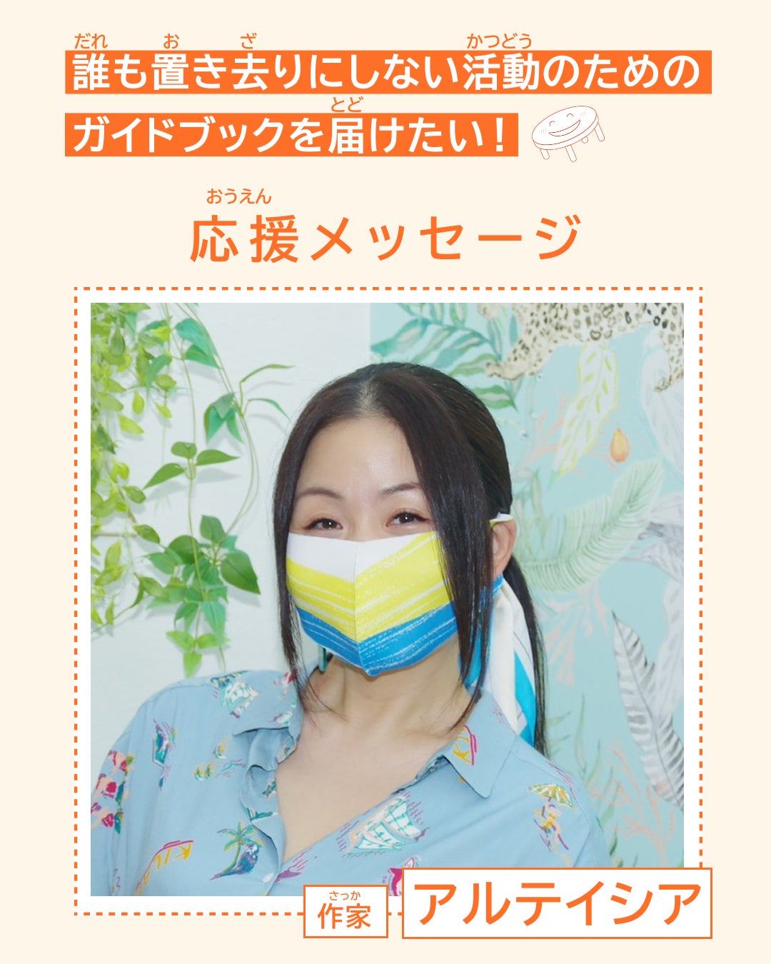 2026/04/23 18:00(やさしい にほんご は した にあります。)「もっと安心して声をあげられる人が増えてほしい」。そんな思いから、ちゃぶじょでは、差別や排除のない、安心して活動できる場づくりを続けてきました。5年目のいま、対話と実践から生まれた知恵をあつめた「あらこてガイド vol.1」を制作します!12団体のリアルな経験を詰め込んだ、社会課題の現場で使える“生きたガイド”をたくさんの人へ届けるプロジェクトを行います!詳細はこちらから。この度、ライター・一般社団法人fair代表理事の松岡宗嗣さんから、応援メッセージをいただきました!■松岡宗嗣さん(ライター・一般社団法人fair代表理事)から応援メッセージ「あらゆる差別に反対」——その言葉を口にしながら、私たちは今日も差別をしてしまっています。では、完璧にできないのであれば「差別に反対」とは言わない方が良いのでしょうか?大事なことは、差別をなくし誰もが安心できる社会を作るために、学び、改善し続けること。そのための知識と実践を広げるこのプロジェクトを応援します。ーーーーーーー ここから やさしい にほんご ーーーーーーー「困(こま)っている 人(ひと)が、安心(あんしん)して 相談(そうだん)できる 場所(ばしょ)を 増(ふ)やしたい」私(わたし)たちは、みんなが 仲間(なかま)はずれにされないで、安心(あんしん)して 活動(かつどう)できる 場所(ばしょ)を 作(つく)ってきました。活動(かつどう)を 始(はじ)めて 5年(ごねん)に なりました。今まで(いままで) 私(わたし)たちが 学(まな)んだことや、役(やく)に立(た)つ ヒントを まとめた ガイドブック を 作(つく)ります。12の グループの 経験(けいけん)を 書(か)いた、活動(かつどう)に すぐ 使(つか)える ガイドブック です。この ガイドブックを たくさんの 人(ひと)に 届(とど)けるための プロジェクトを 行(おこな)います!くわしくは こちら の ページから。ライターで 一般社団法人(いっぱんしゃだんほうじん)fairの 代表理事(だいひょうりじ)、松岡(まつおか) 宗嗣(そうし)さんから 応援(おうえん)の メッセージを もらいました!■松岡(まつおか) 宗嗣(そうし)さんの メッセージ「どんな 差別(さべつ)にも 反対(はんたい)します」―― その 言葉(ことば)を 言(い)いながら、私(わたし)たちは 今日(きょう)も 誰(だれ)かを 傷(きず)つけたり 差別(さべつ)したりしてしまっています。では、正(ただ)しく できないなら 「差別(さべつ)に 反対(はんたい)します」と 言(い)わないほうが いいのでしょうか。大切(たいせつ)なことは、差別(さべつ)を なくして 誰(だれ)もが 安心(あんしん)できる 社会(しゃかい)を 作(つく)るために、勉強(べんきょう)して、ずっと 直(なお)し続(つづ)けることです。そのために 必要(ひつよう)な 知恵(ちえ)を 広(ひろ)める この プロジェクトを、私(わたし)は 応援(おうえん)します。 もっと見る