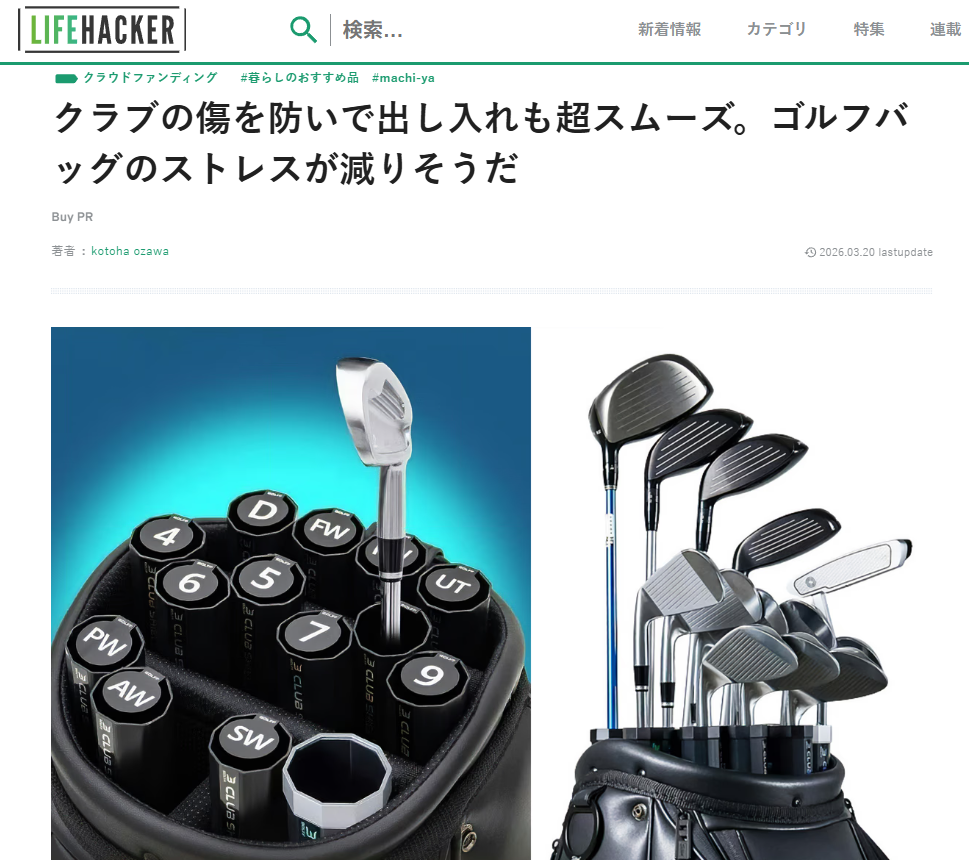 2026/03/31 16:25皆様こんにちは!クラブ収納に新しい価値をもたらす『クラブシールド』プロジェクトチームです。本日は、皆様に嬉しいご報告がございます。このたび、大手メディア「ライフハッカー」にてクラブシールドをご紹介いただきました!プロジェクトをご覧いただいている皆様、そして日頃より応援してくださっている皆様のおかげで、このような形で取り上げていただけたこと、心より感謝申し上げます。▼掲載記事はこちら▼https://www.lifehacker.jp/article/machi-ya-clubshield-start-928318/いよいよゴルフのベストシーズン到来!さて、新生活が始まり、いよいよゴルフのベストシーズンを迎えますね。是非、このタイミングで、ゴルフバッグの中も一度見直してみませんか?クラブシールドは、大切なクラブを傷や摩擦から守るだけでなく、バッグの中をすっきりと整えることで、プレーそのものをより快適にしてくれるアイテムです。ラウンド中、クラブを探して焦る瞬間よりも、迷いなくスッと取り出せるだけで気持ちに余裕が生まれます。ちょっとしたことですが、プレー全体に良いリズムが生まれたりするものです。温厚な人でも、つい人が変わってしまう。それがゴルフです。実際のラウンドでは、・クラブが引っかかって抜けない・使いたい番手がすぐに見つからないほんの小さなことなのに、なぜかプレー中だと無性にイライラしてしまう。気づけば、同伴者に気を使わせてしまっていた…そんな経験がある方も多いのではないでしょうか。だからこそ、余計なストレスを減らし、落ち着いてプレーできる環境を整えることが大切だと考えています。“余計なストレス”を手放すためのシンプルな解決策クラブ同士がぶつからず、絡まず、スムーズに抜き差しできる。必要な一本を迷わず取り出せるだけで、プレーの流れが驚くほど整います。慌てることなく、自然な所作でクラブを手に取る。その一つひとつの動きが、プレーに落ち着きと余裕をもたらしてくれます。ゴルフは“紳士のスポーツ”と言われますが、その印象はスコアだけでなく、こうした何気ない所作にも表れるものです。バッグの中が整うと、気持ちも整う。メンタルが結果に直結するゴルフだからこそ、気持ちよく、快適にプレーできる環境は大きな意味を持ちます。その積み重ねが、いつものラウンドをもっと楽しいものに変えてくれるはずです。是非、今シーズンは、クラブシールドを迎えてよりスマートに、より快適にラウンドをお楽しみいただけたら嬉しく思います。▼クラブシールドプロジェクトはこちら▼https://camp-fire.jp/projects/892768/それでは、引き続き応援のほどよろしくお願いいたします。クラブシールドプロジェクトチーム一同 もっと見る
