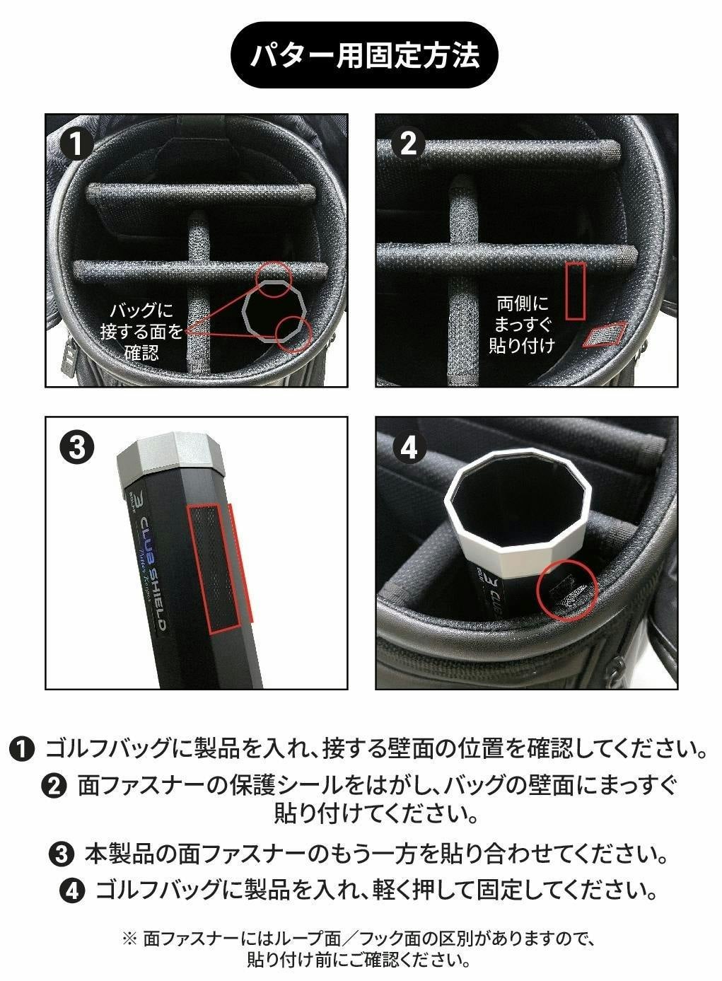 • ・クラブを傾けて引き抜くと、内部の摩擦によりクラブシールドが一緒に引っ張られる場合があります。クラブはまっすぐにスッと引き抜いてください。