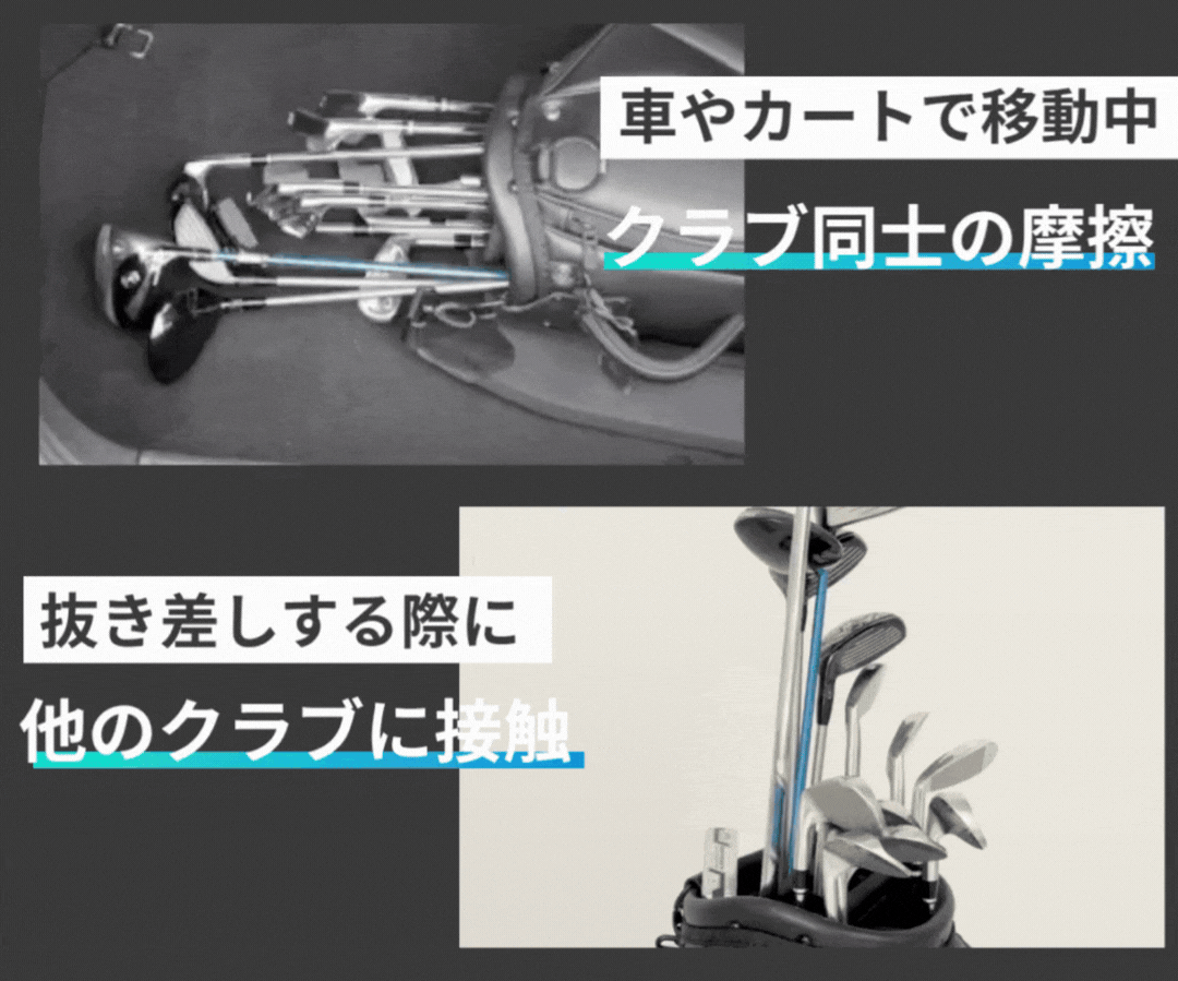 クラブシールドなら、絡まり・引っかかり・同時持ち上がりを解消。バッグからスッと引き出して、スッと戻せる。プレー中の小さなストレスを減らし、集中力を切らさない、快適なプレーをサポートします。