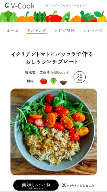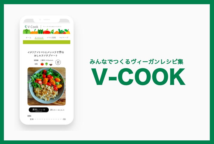 『V-COOK』は、みんなで作るオンラインヴィーガンレシピ集です。