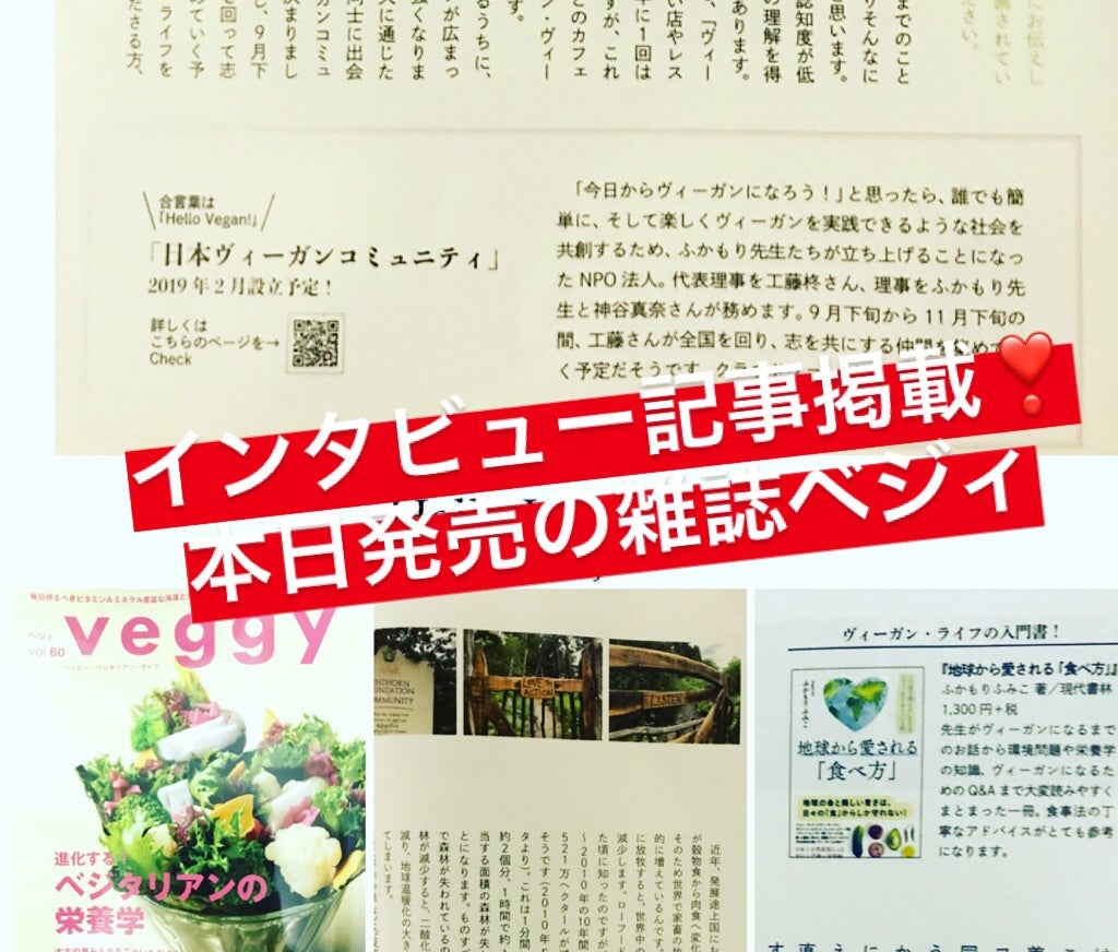 9月10日発売の日本で唯一のベジタリアン、ヴィーガン雑誌である「Veggy」に私のインタビュー記事が掲載されました!