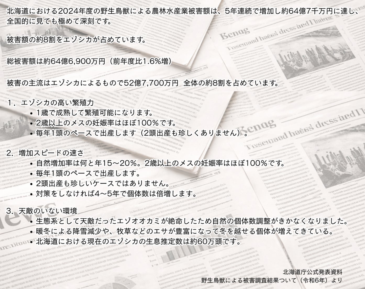 農作物被害の原因となっているエゾシカを単なる“駆除”で終わらせてしまうのではなく、栄養価の高いその肉を、愛犬のための“ご褒美”として活かし、命に感謝できる形にしたい。
