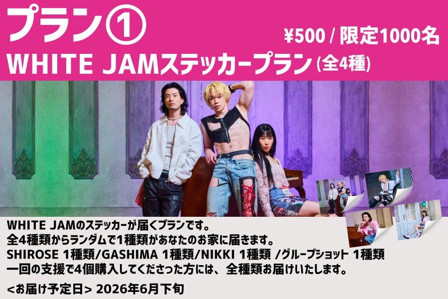 WHITE JAMのライブを一生残る形にしたい!って思ってくれてる君に、応援してほしいです。