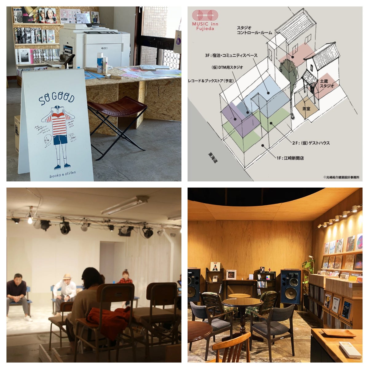 さらには陶芸などの体験を通して、手を動かす時間をひらく OKEIKO CAFE。日常に彩りと癒しをもたらすポーセラーツ体験ができるポーセラーツサロンAmelie。演劇文化を育む ひつじノ劇場。 レコードとカレーを軸に、音楽と日常が交わる 喫茶ムー。 本とレコードを通して、感性と出会う SO GOOD books & styles。そして、 ASIAN KUNG-FU GENERATIONの後藤正文氏が創立に関わる滞在型音楽スタジオ MUSIC inn Fujiedaなど