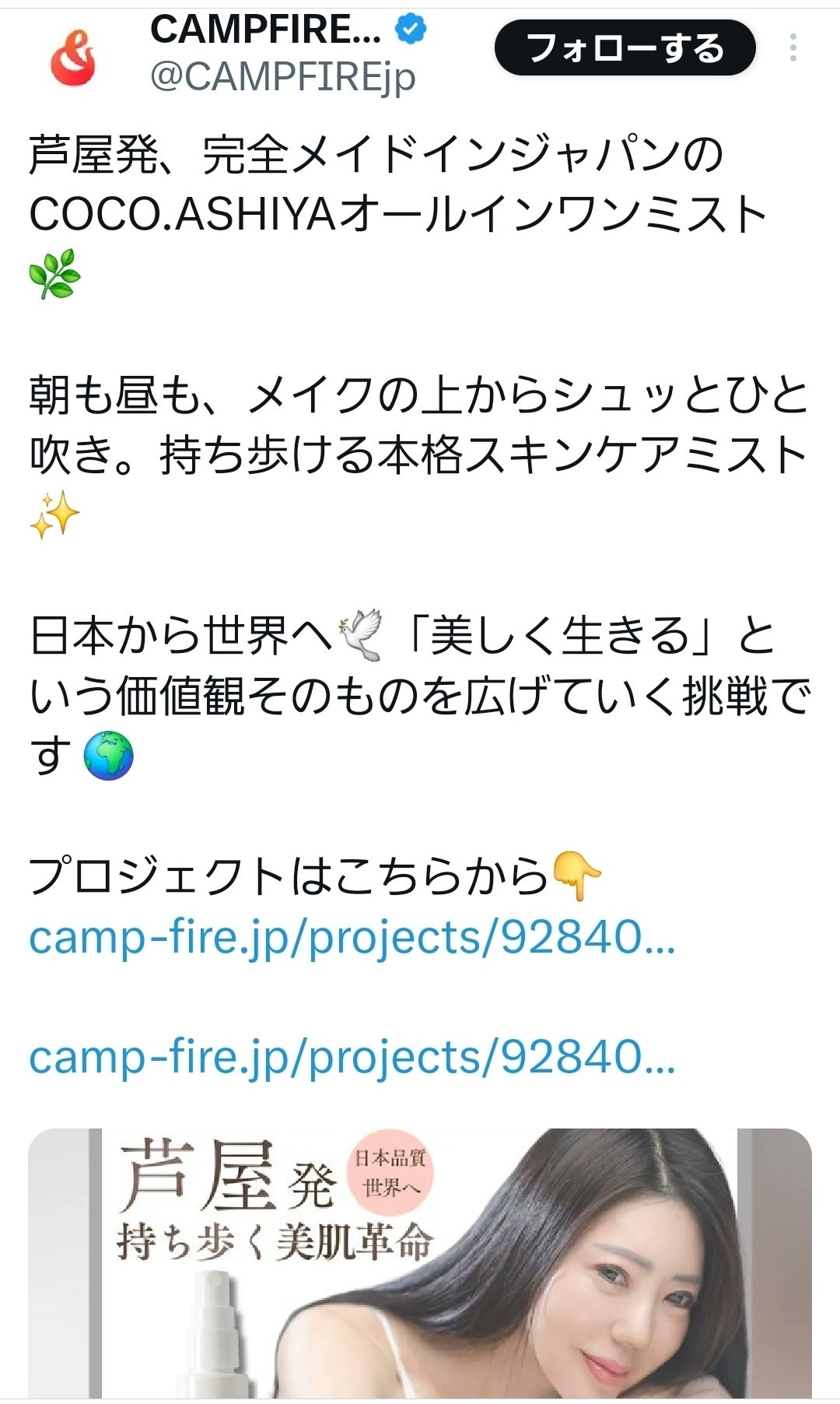COCO.ASHIYA オールインワンミストを通じて、新しい美の文化を広げていきたいと本気で考えています。