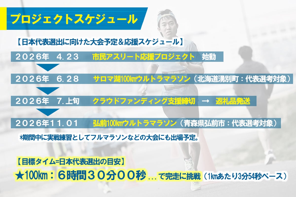 ウルトラマラソンは世界選手権でも日本人選手が多く活躍しており、2024年インド大会では優勝を含む4位までを日本人3人が占め団体優勝を果たしているなど、日本人選手がワールドクラスで活躍できる稀有な競技です。市民トップアスリートの相川選手が、日本代表として世界で活躍する姿を見てみたい、そんな願いをこのプロジェクトには込めています。
