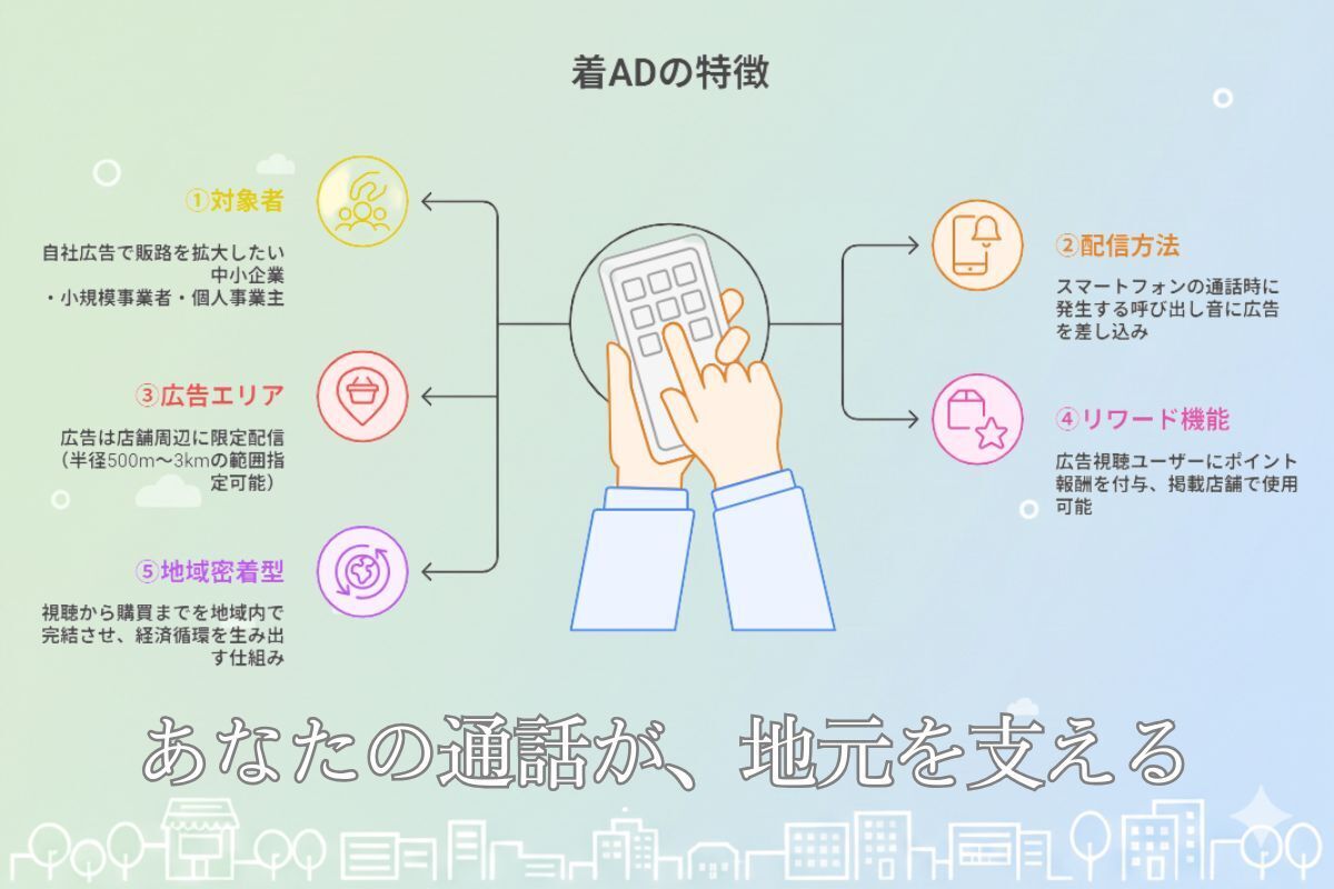 もっと詳しく知りたい方は、Googleで「通話広告 着AD」と検索してみてください。AI要約付きで、さらに分かりやすく本サービスの概要をご覧いただけます。
