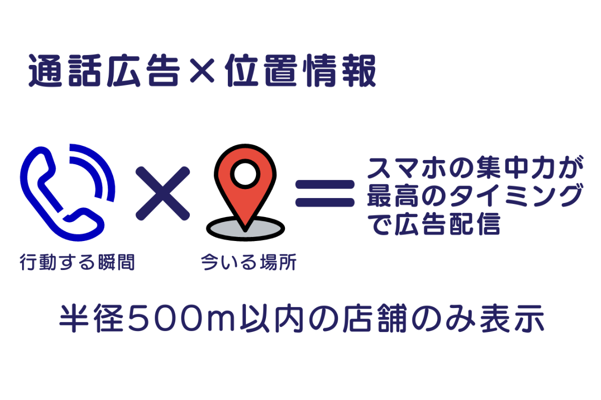 スマートフォンの通話時に再生される『5秒の音声広告』という新しい広告手法で、地元の店舗・サービスを確実に届ける仕組みです。