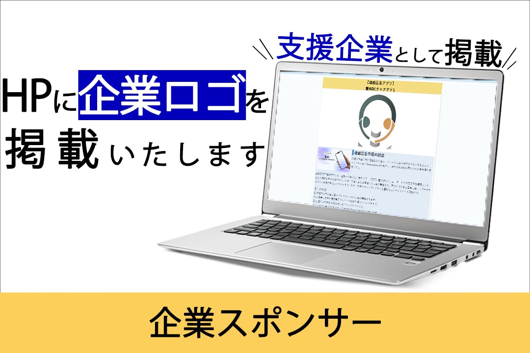 企業スポンサー様として、公式ホームページに企業ロゴを掲載させていただきます。