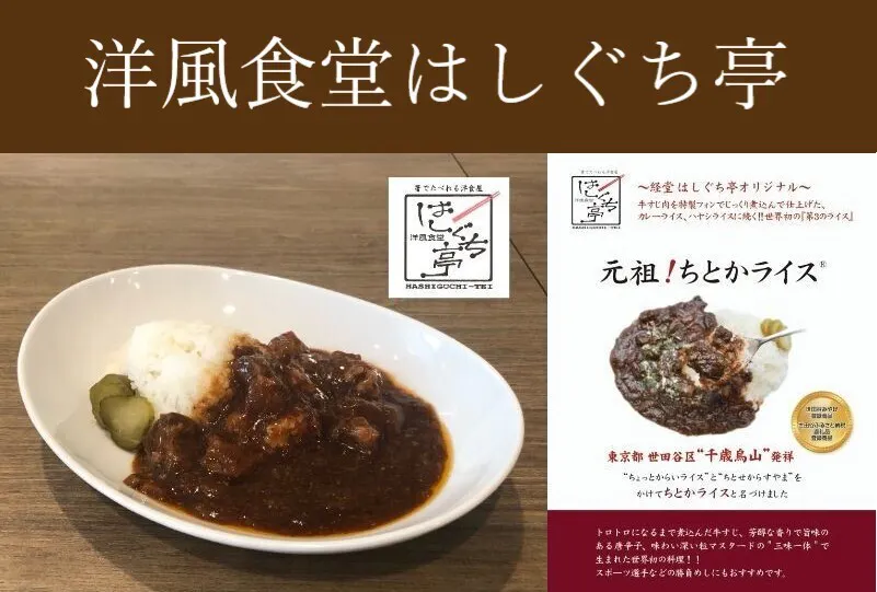 「ちとかライス」というユニークなネーミングは、洋風食堂はしぐち亭の創業地「千歳烏山(ちとせからすやま)」と、味が「ちと辛い(ちとから)」という2つの言葉を掛け合わせたダブルミーニングに由来します。