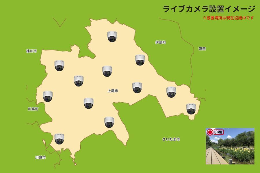 上尾市の魅力を最大限に引き出すライブカメラの設置場所を選定中です。