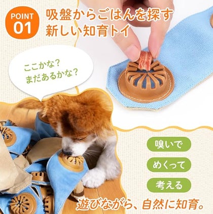 布ベルトに付いた吸盤部分に、おやつやフードを隠すことで、嗅覚を使って探し、前足や鼻でめくる遊びが自然に生まれます。短時間でも集中しやすく、満足感のある遊びが可能です。