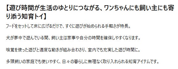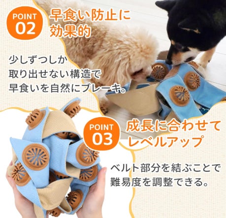 自分の愛犬がすぐにおもちゃに飽きてしまったり、早食いで悩んでいたり、留守番の時間が多かったり、ワンちゃんのストレス解消に役立つ商品が欲しかった為に考えました、暇つぶし早食い防止、ソファーかじり、など悩みを持つ飼い主さんの少しでもお力になりたいと思いこのプロジェクトを立ち上げました。