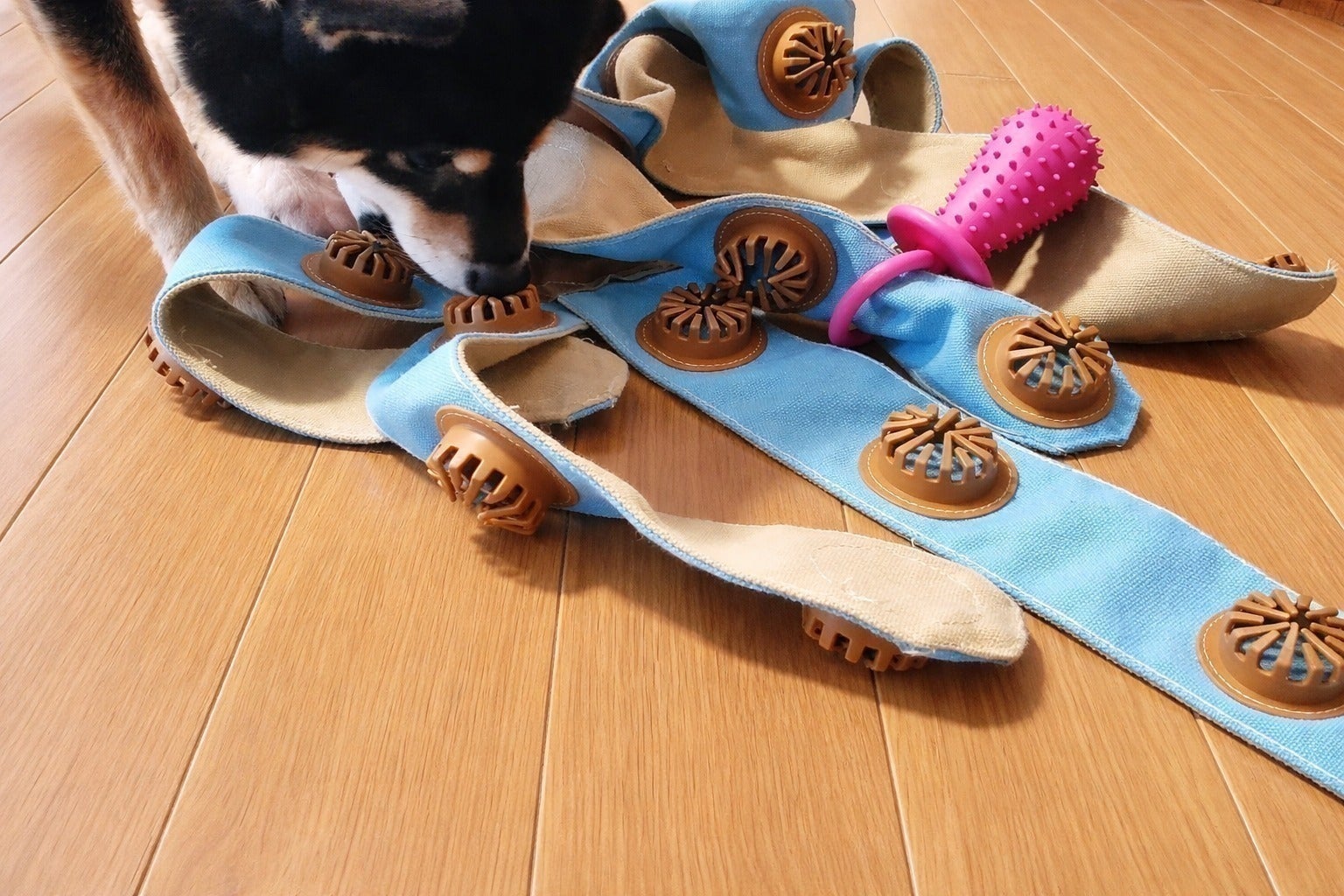 匂いを頼りに考えながら行動することで、室内でもしっかりと頭を使った遊びができます。家具をかじる、落ち着きがないなどの気分転換にも役立ちます。