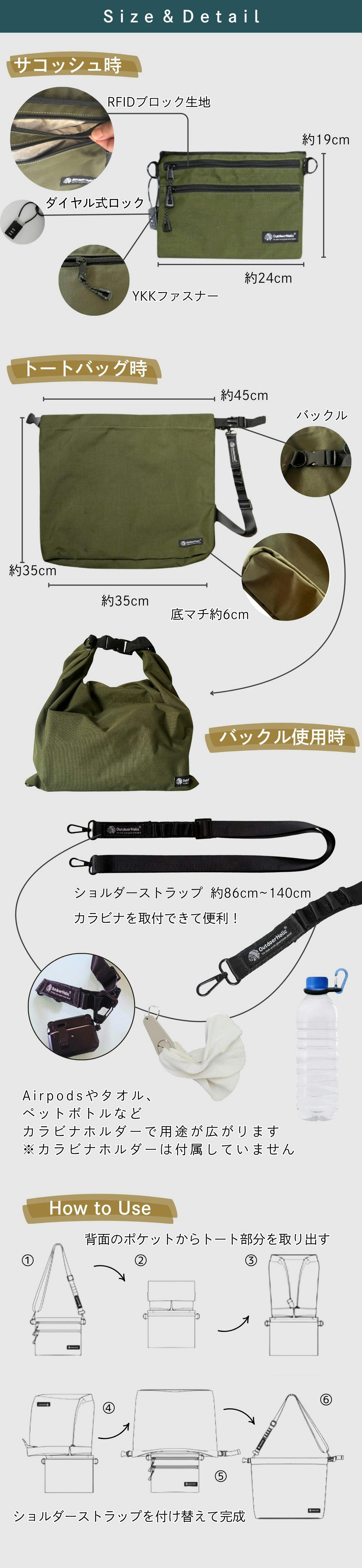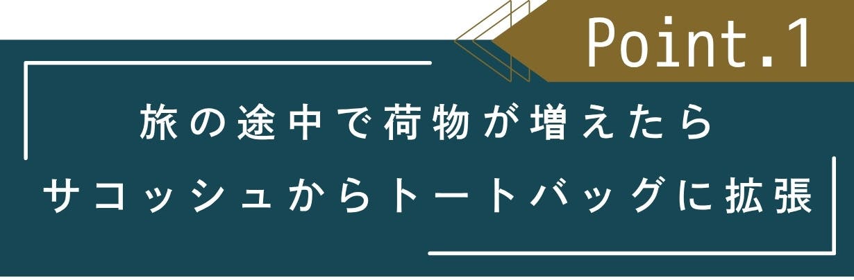 軽装で出かけたい日も、しっかり荷物を持ち帰りたい旅の途中も。サコッシュで出かけて、トートバッグで帰路に着く。
