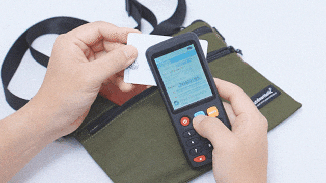 下の画像は、市販のRFIDリーダーを使ってMorph C2Lのデータ保護性能を検証した実験の様子です。ポケットに収納したカードは「読み取り失敗」と表示され、情報の読み取りが遮断されていることが確認できました。