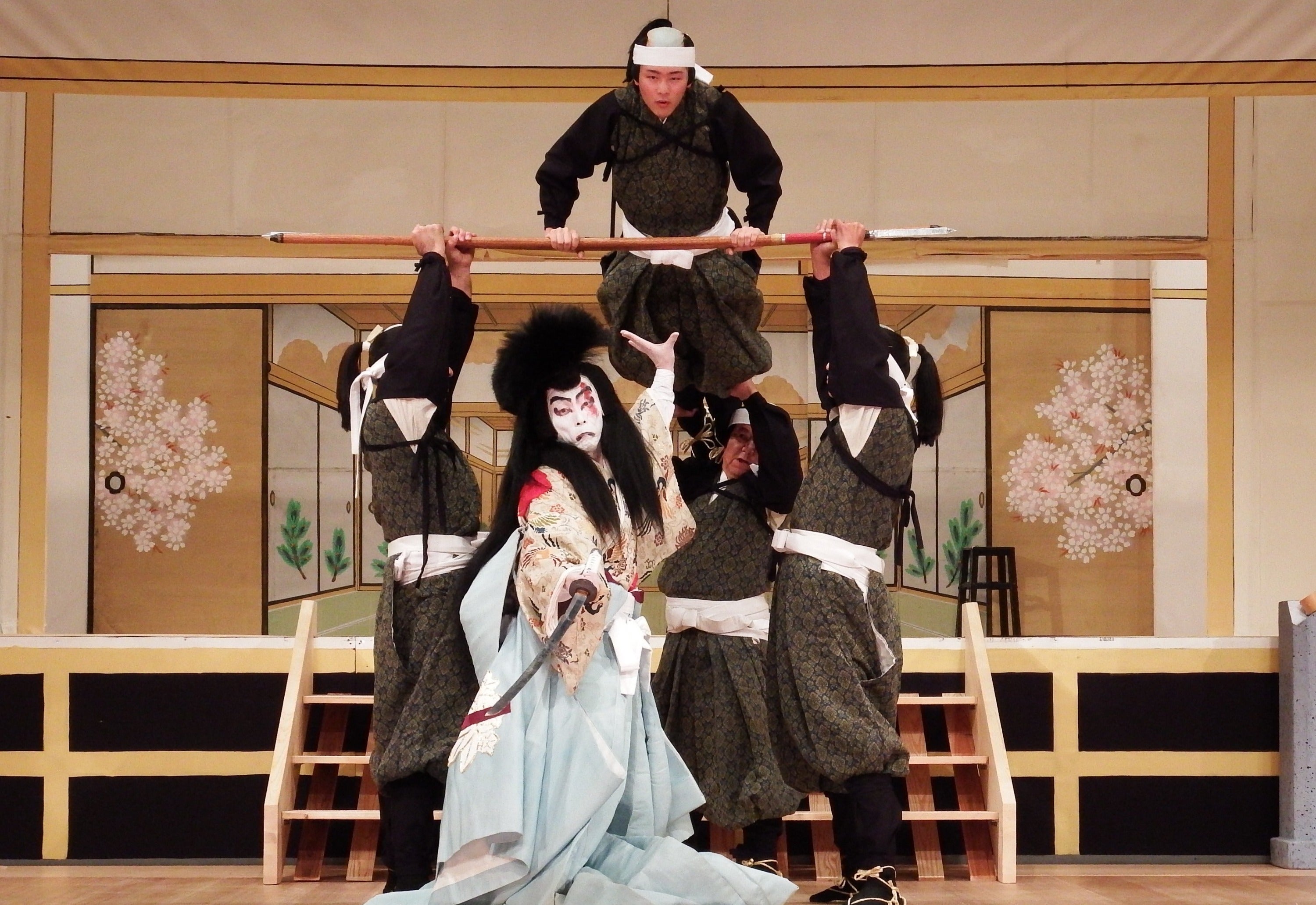 〈公演の内容〉今回の公演は、子ども歌舞伎にて干溝歌舞伎オリジナルの「やまびこ三番叟」。小学生、中学生による「大石東下り」。そして保存会員で「引窓」を上演いたします。現在は立ち稽古に日々努力しています。また市内の民謡民舞の和楽路保存会による「よしよし」も上演いたします。この演目は「大石東下り」とは「忠臣蔵」でつながる民謡民舞となります。そして当日の会場である魚沼市響の森文化会館のホワイエを、江戸風に装飾しお客様をお迎えする準備などを行っています。