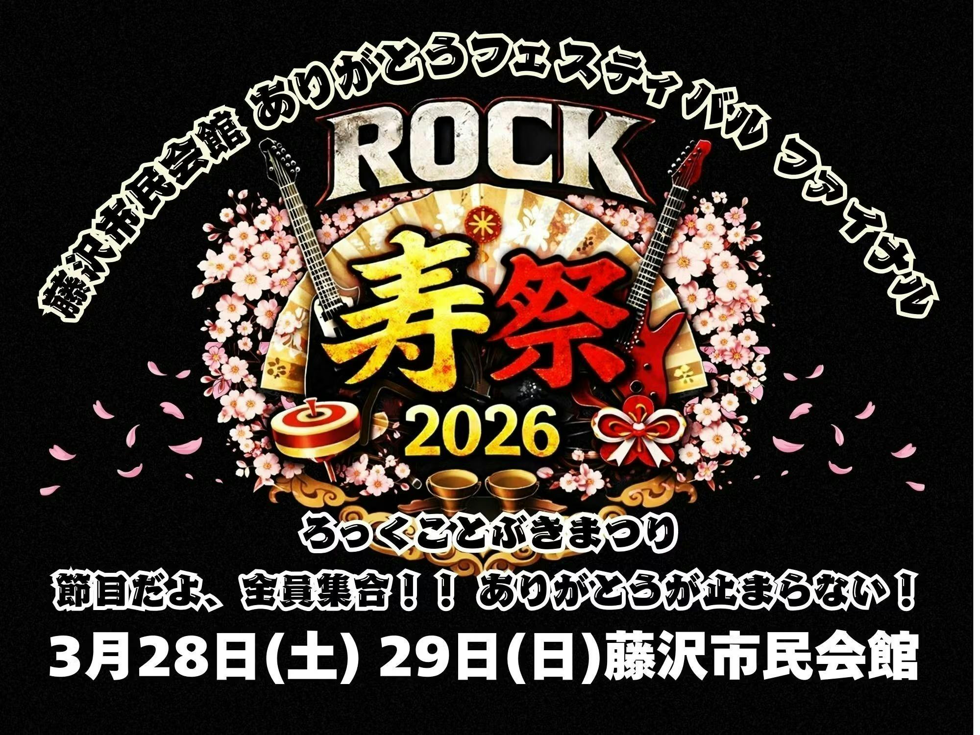 今年の3月半世紀近く私たちの文化を支えてきた「藤沢市民会館」が建て替えのために一時閉館となります。その最後の瞬間を新しいスタートを切る節目を迎えた人々とともに感謝を伝えるべく、人生祝祭型イベント「ROCK寿祭2026」を開催します。