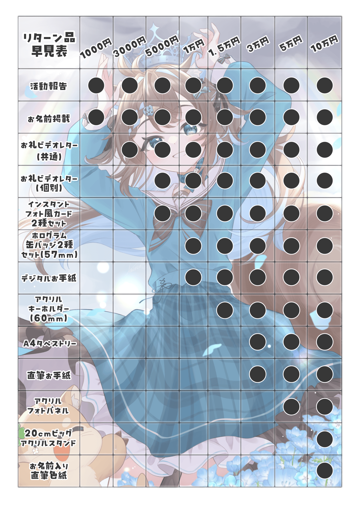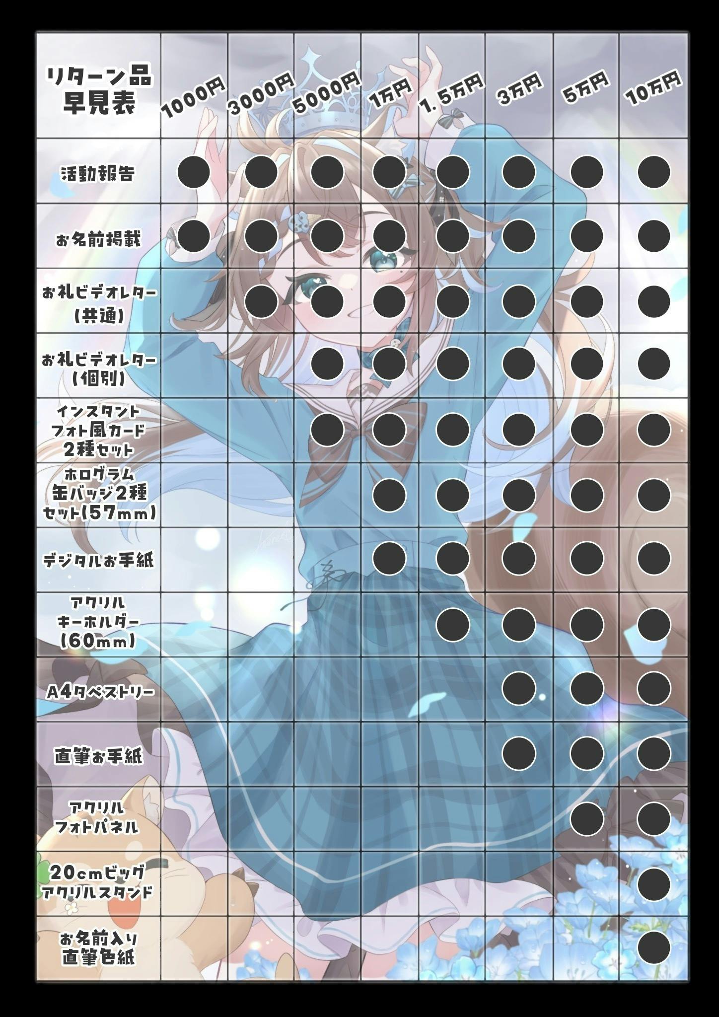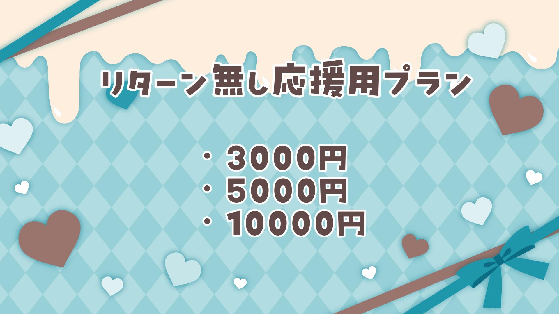 こちらはグッズ等リターン品無しに応援したい方向けのプランです。全てのプランに活動報告とお礼画像お名前掲載がついています。