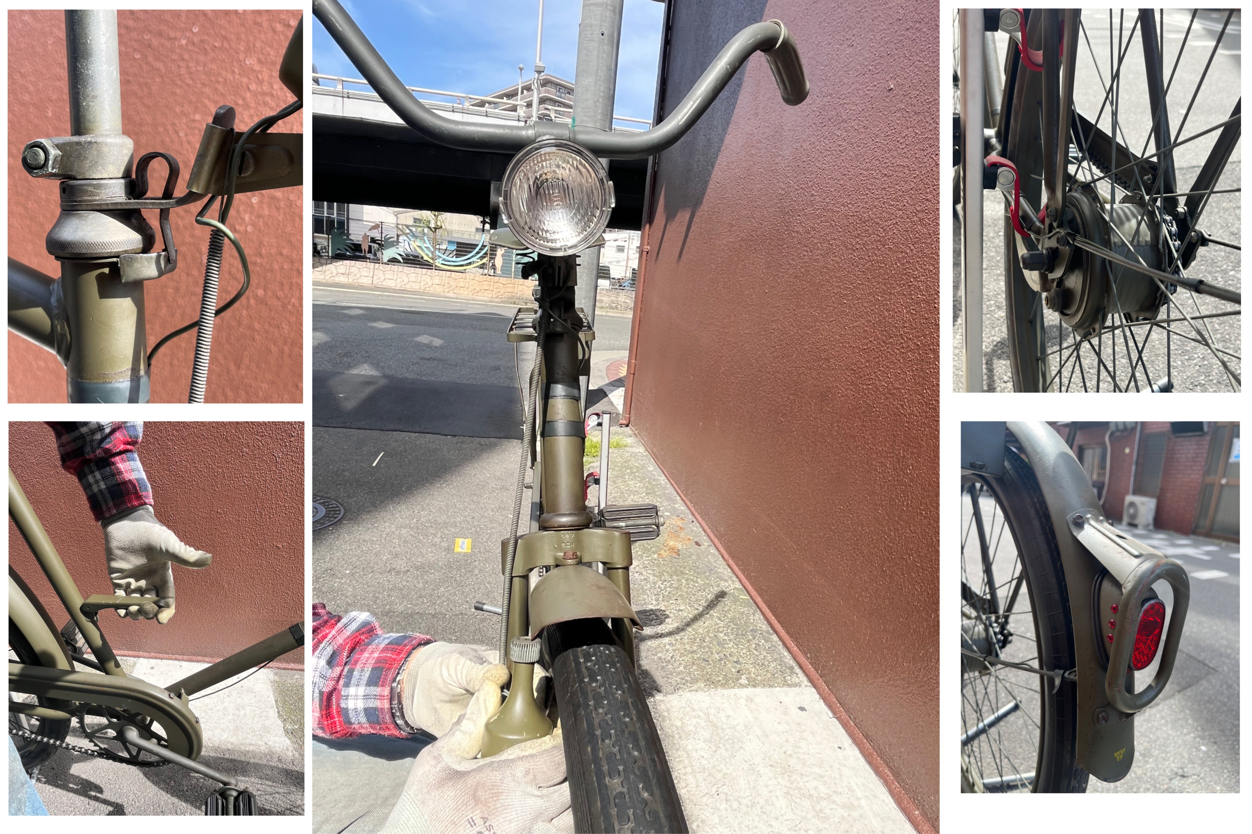 特筆すべきはタイヤが当時のままらしく、ダイナモヘッドライトが点灯します!