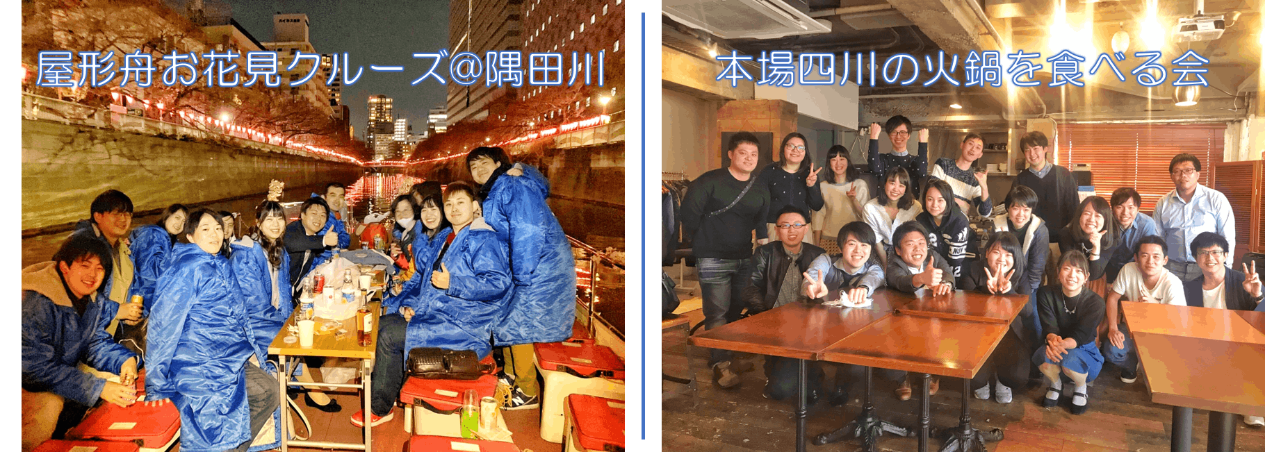 最近では「屋形舟お花見クルーズ」と「本場四川の火鍋を食べる会」を開催させて頂きました。