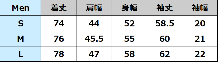サイズは男女ともにS・M・Lの3サイズをご用意しました。