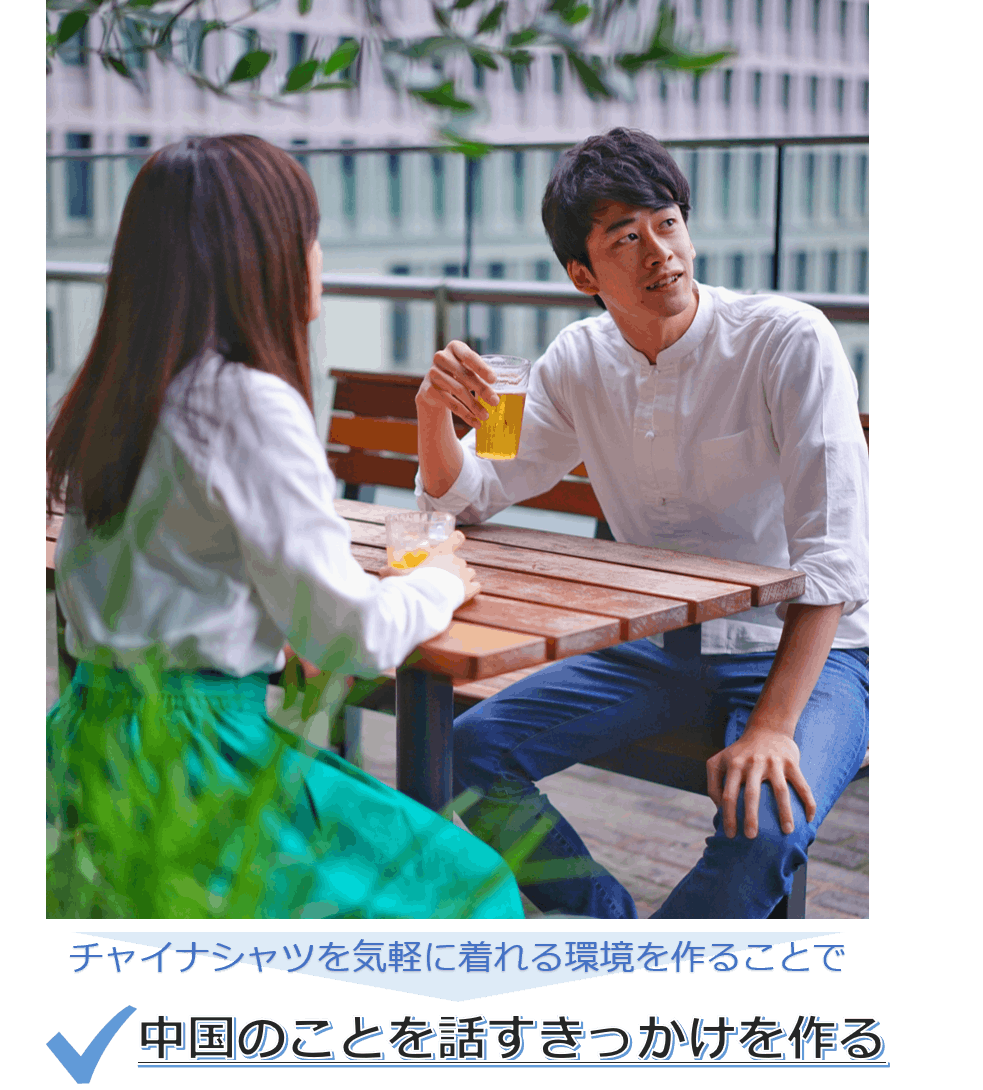 今回製作したチャイナシャツを普段から着ることで、あなたの周りで中国のことを話すきっかけが自然と増えていき、中国に対する意識に少しでも変化が生まれること願っています。