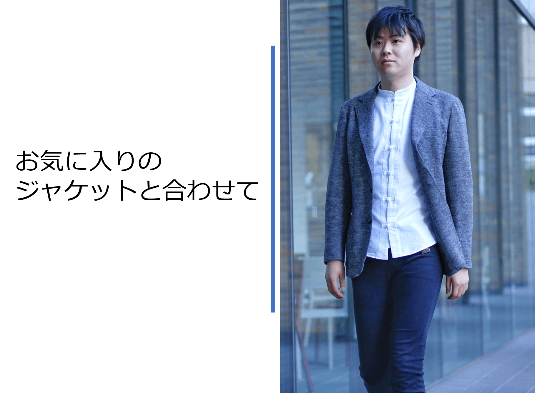世界一普通なチャイナシャツは普通すぎて周りから気づかれないかもしれませんが、それくらい簡単に着ることができるようなデザインです。