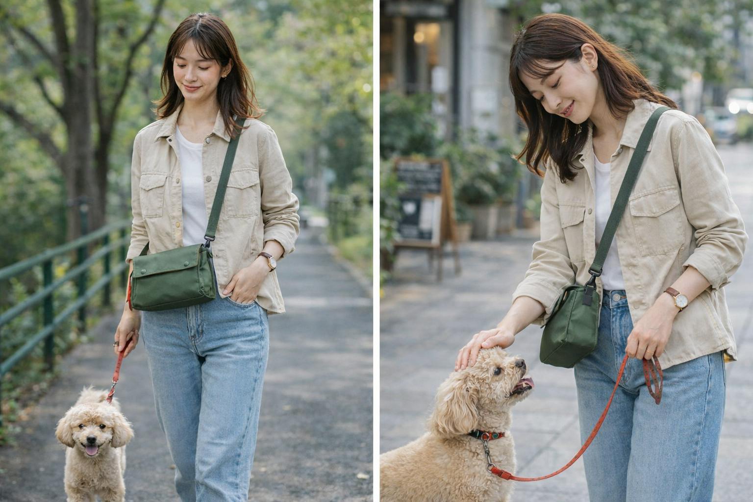 カジュアルな装いにも合わせやすく、外出や散歩、旅行シーンでも取り入れやすいカラーです。