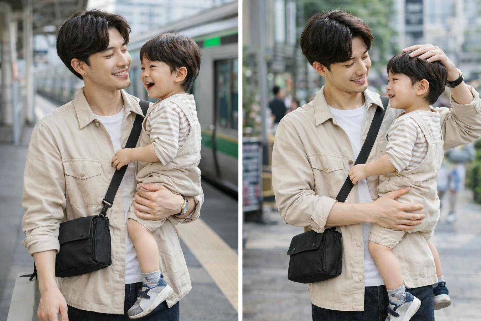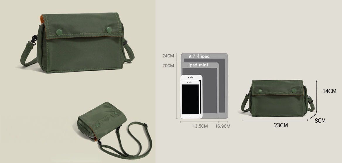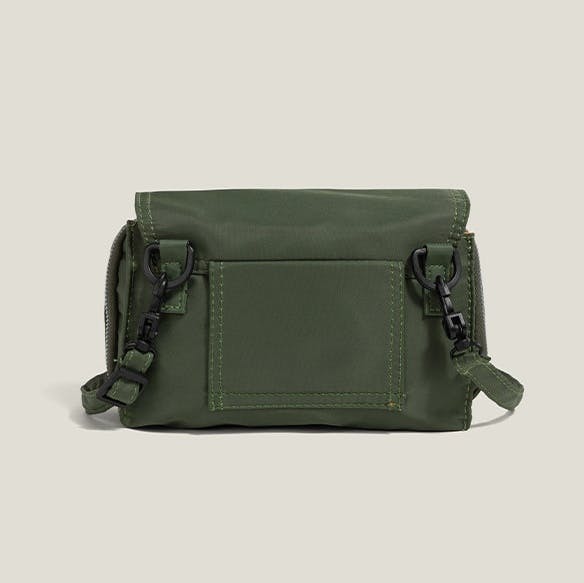お子さまとの外出時にも扱いやすいコンパクトサイズ。スマートフォンや鍵、財布など必要なものを整理して収納でき、両手を使いたい場面でも持ち歩きやすい設計です。
