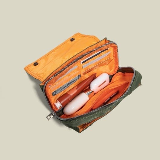 スマートフォン、財布、モバイルバッテリー、イヤホン、化粧品など外出時に必要なアイテムをまとめて収納。