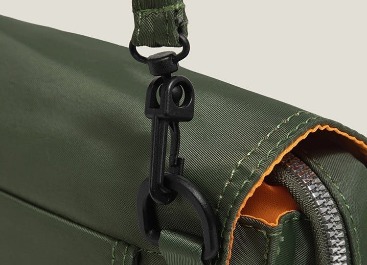 スマートフォンや財布、イヤホンなど必要な小物を整理して収納でき、移動中も取り出しやすい設計です。
