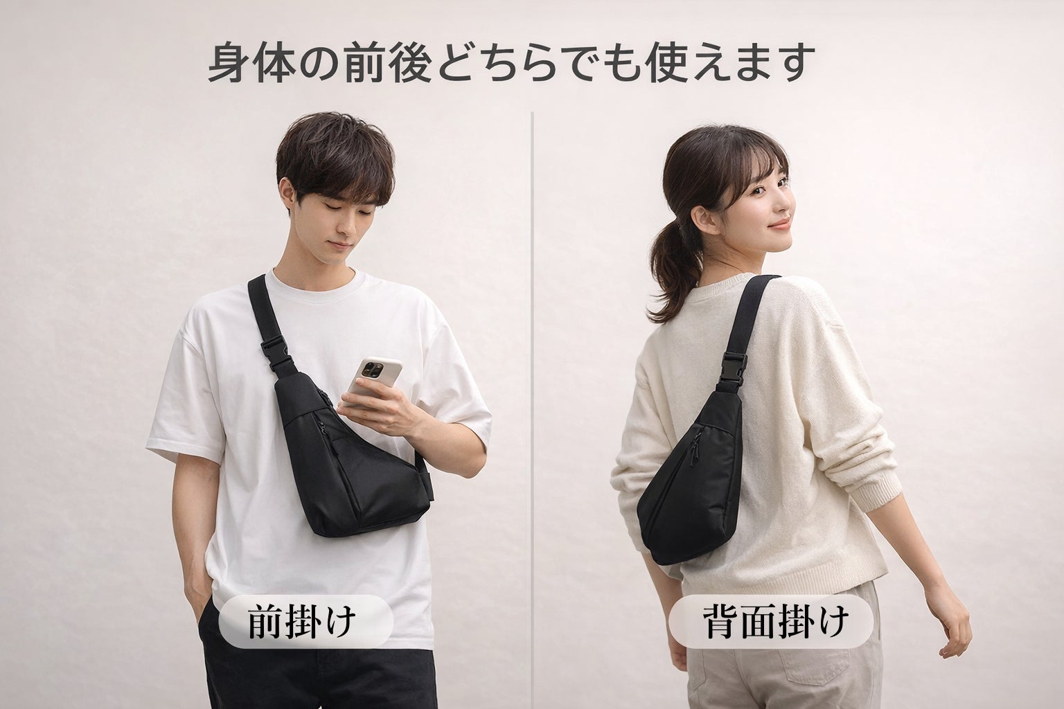 スマートフォンや財布、小物類をまとめて持ち運べるため、日常の外出でも身軽に行動できます。