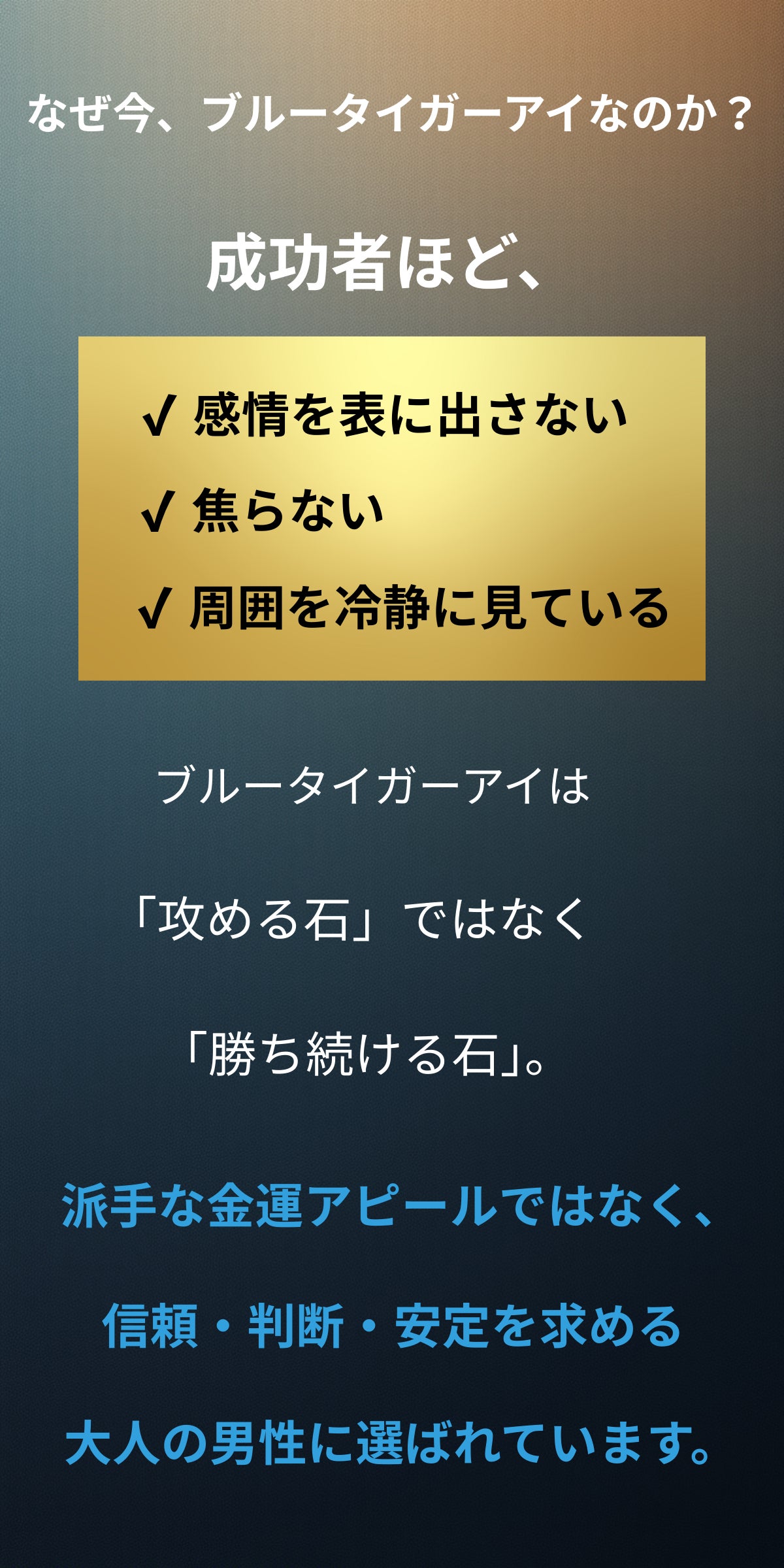 その第一歩として、このブルータイガーアイを通じて