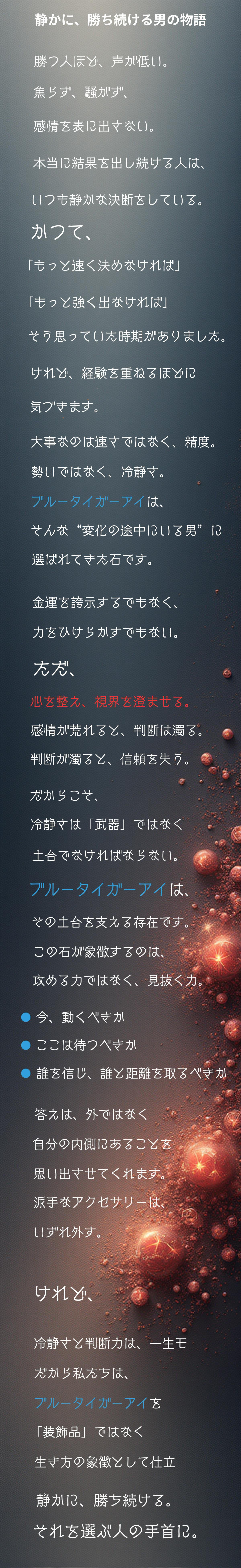 ぜひ、このプロジェクトを通じて、ブルータイガーアイの静かな力を
