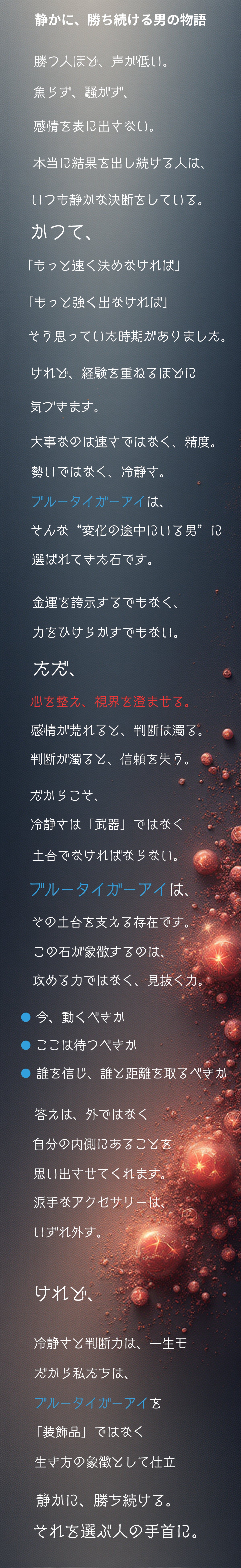 ぜひ、このプロジェクトを通じて、ブルータイガーアイの静かな力を