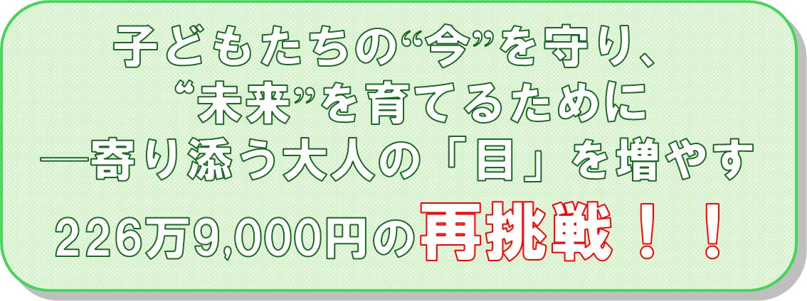 子どもたちの「今」を、今度こそ万全な体制で守り抜くために。どうか、もう一度だけ、皆様のお力をお貸しください。よろしくお願いいたします。