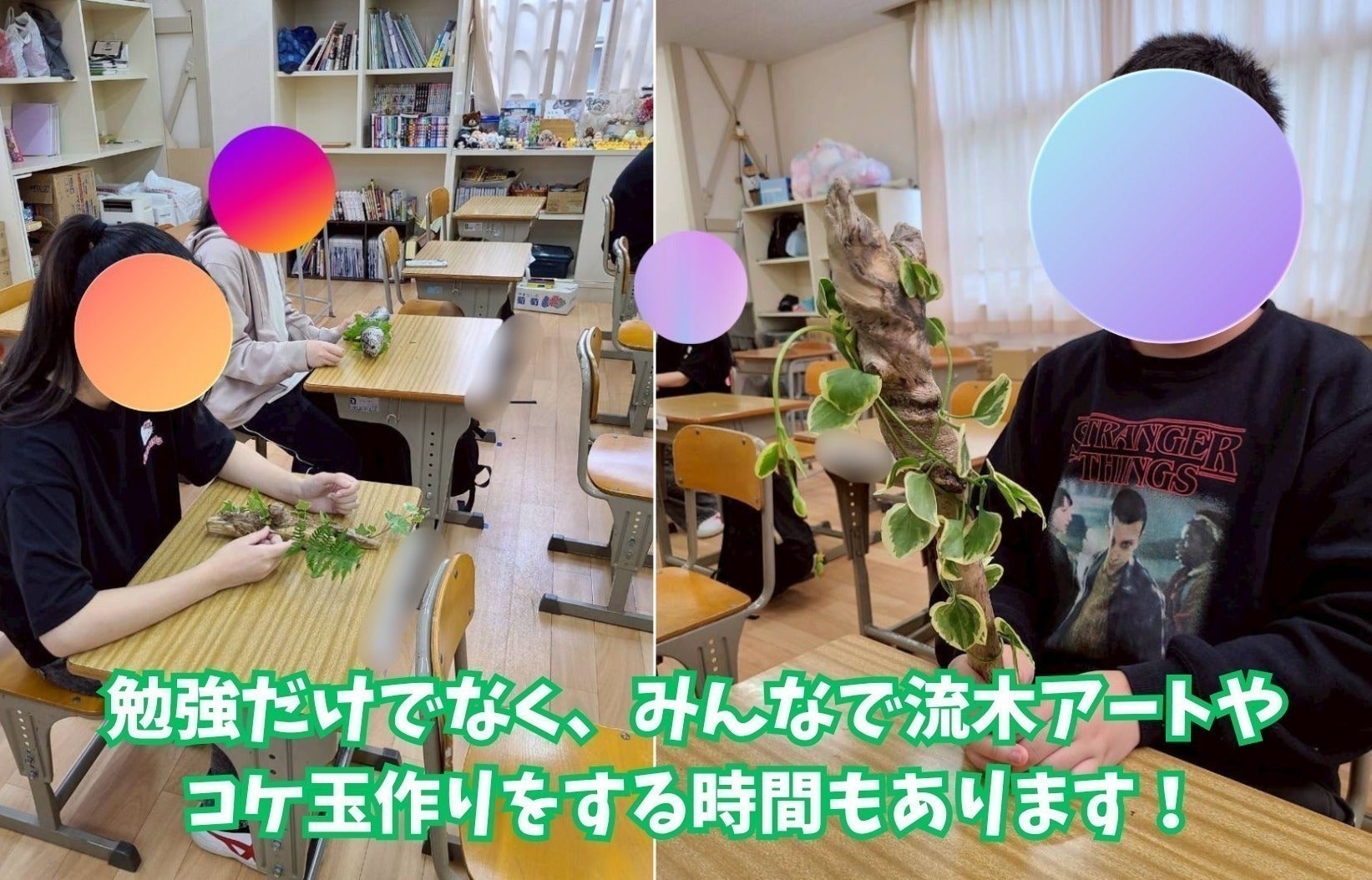 さらに、通信制高校のサテライト校も併設しているので、高校のカリキュラムに沿った学習も行っています。全生徒が協働して行うプロジェクトもあり、互いに助け合う精神を育む場にもなっています。