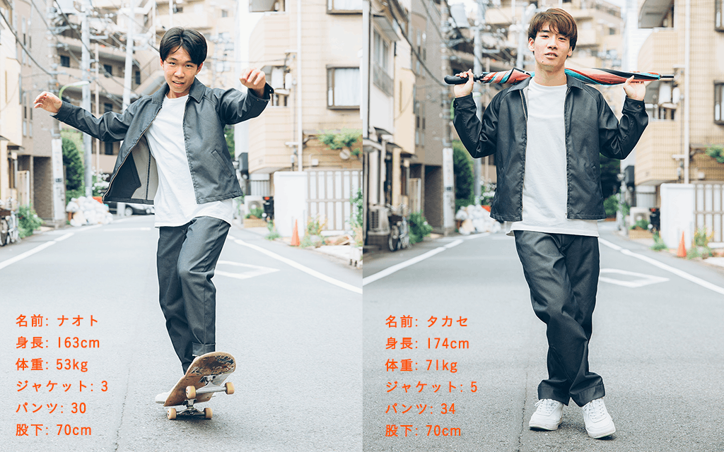 ジャケットはサイズ1(レディースSサイズ相当)~サイズ6(メンズXLサイズ相当)の6サイズからお選びいただけます。