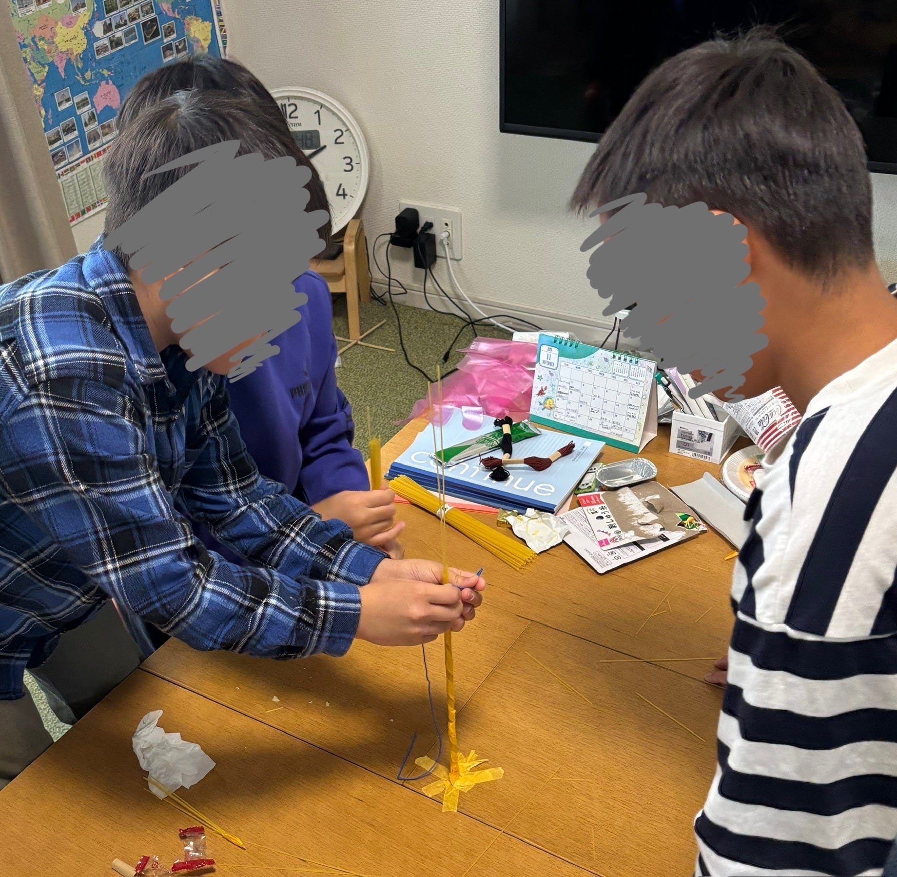意見を出し合いながらマシュマロタワーに挑戦