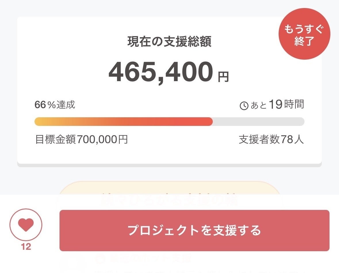 現在、78名の方にご支援いただき、支援総額は465,400円となりました。