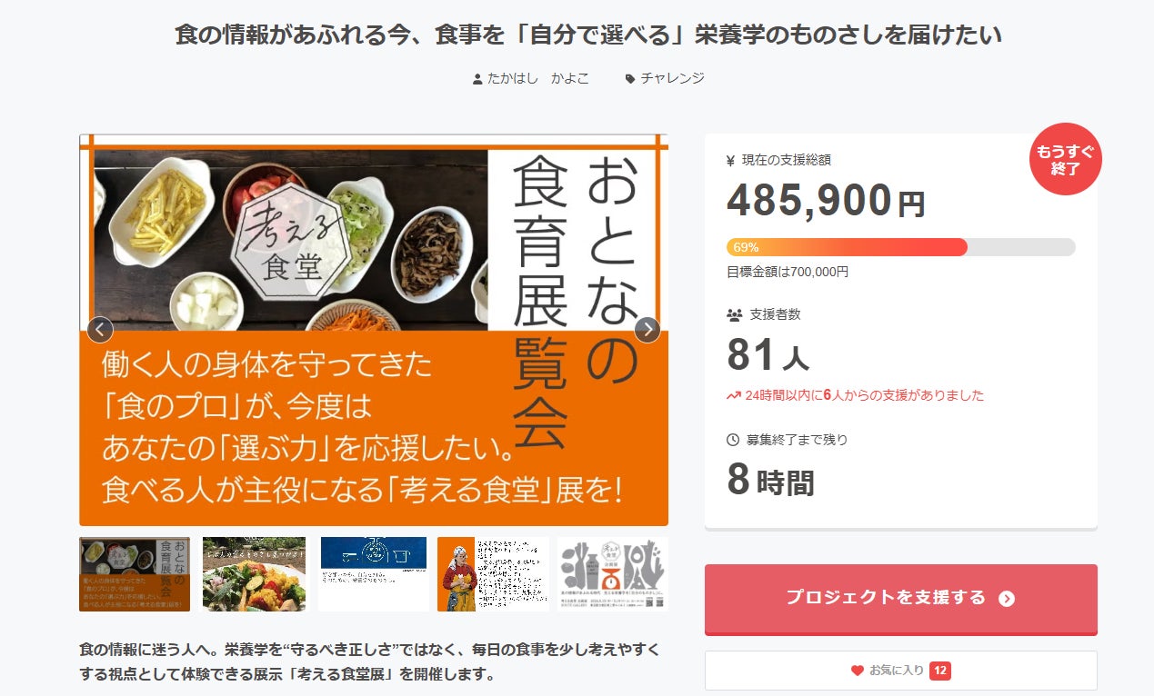 クラウドファンディング終了まで、あと8時間となりました。
